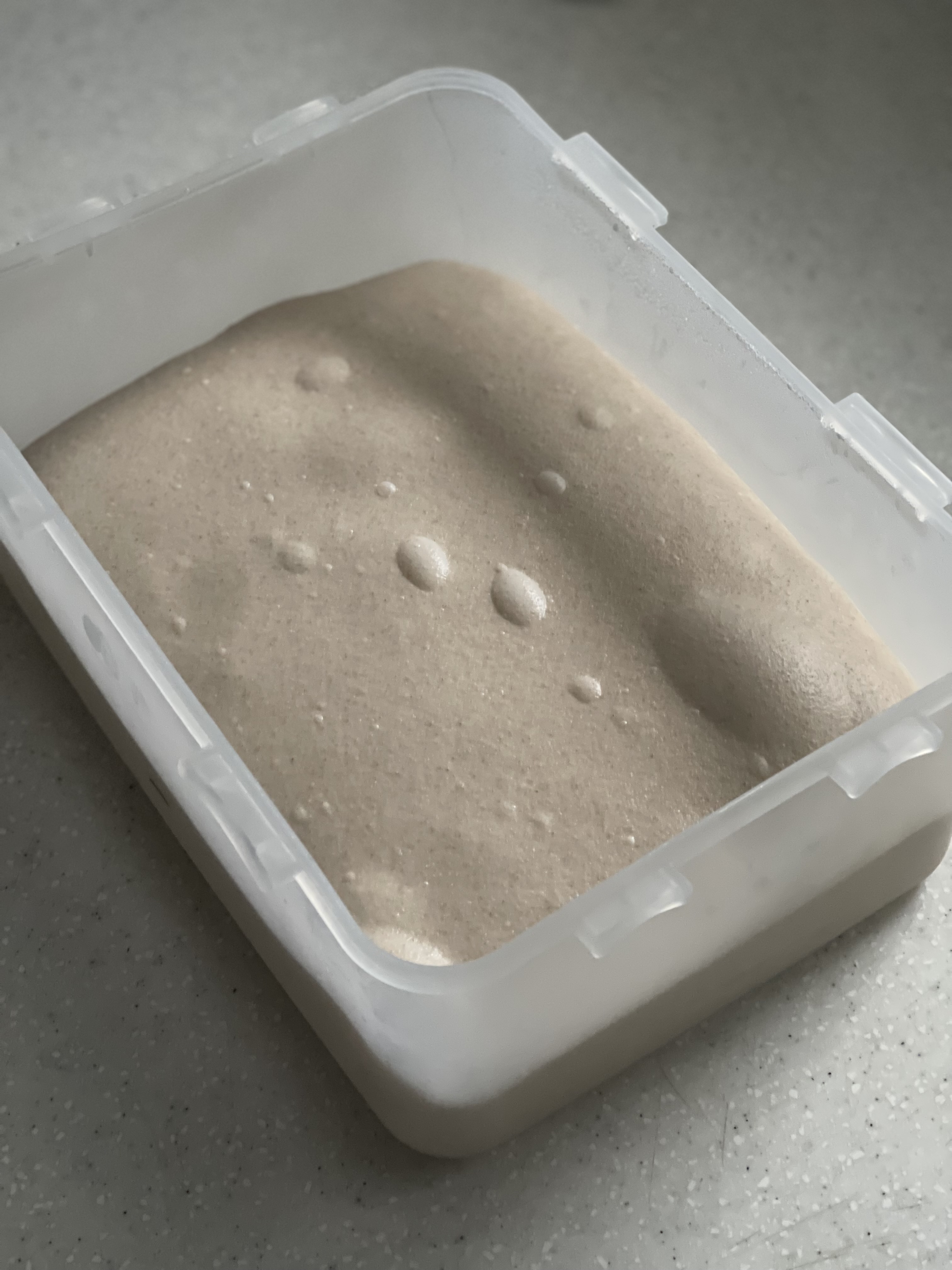 다음 날 아침 6시 반, 반죽을 꺼내 바로 분할에 들어갔다. 분할하고 가성형하는 동안 은은한 달콤한 발효향이 퍼졌고, 기포가 올라오는 걸 보니 발효 상태도 좋아 보였다.