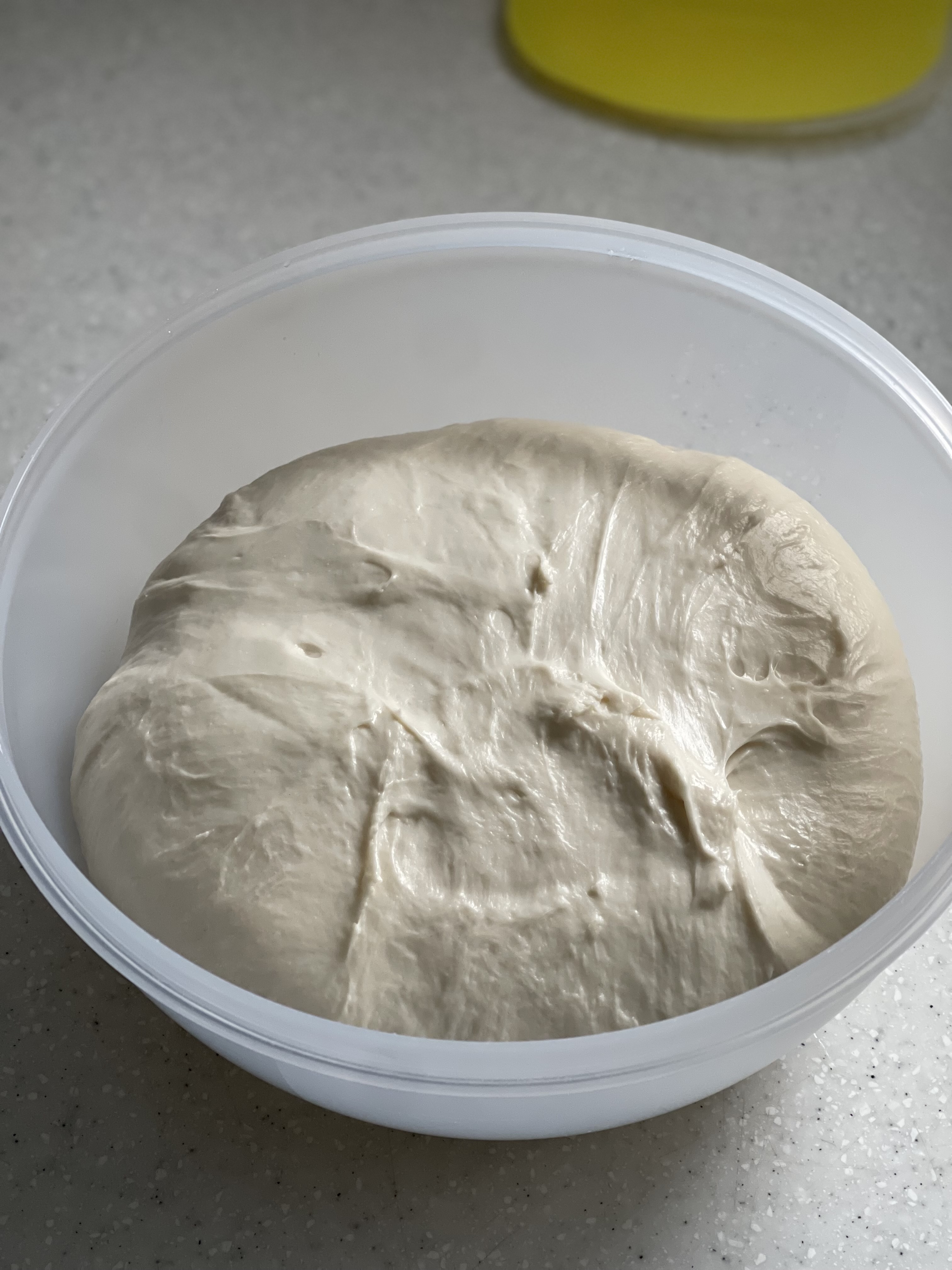 탕종을 제외한 재료를 먼저 넣고 글루텐이 어느 정도 형성될 때까지 믹싱한 뒤, 탕종을 2회에 나눠 넣으며 마무리 믹싱을 진행했다. 매끈해진 반죽은 발효 용기에 옮겨 1차 발효에 들어갔다.
