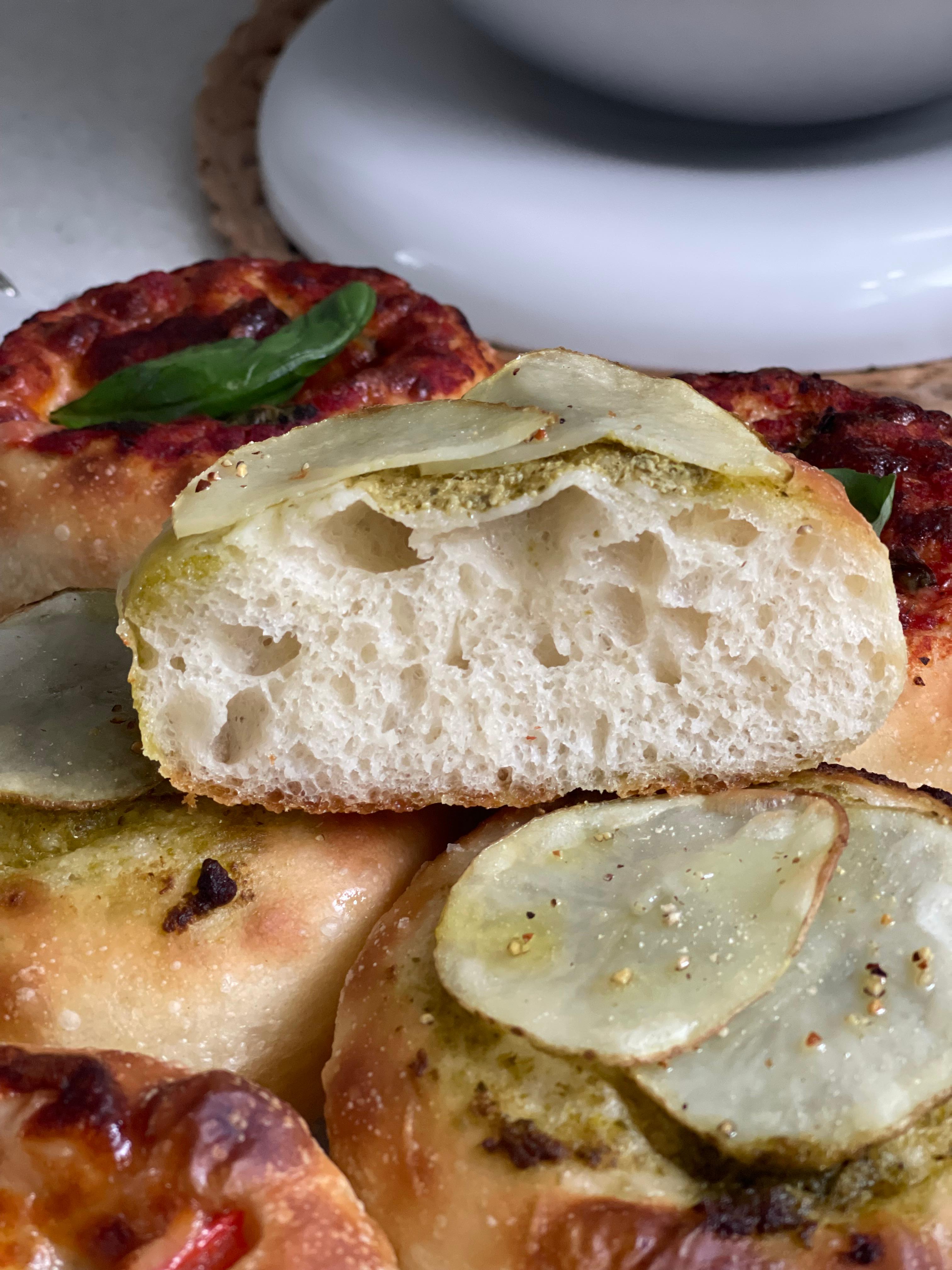 고생지가 들어간 덕분에 높은 수분율에도 안정적으로 발효됐고, 풍미도 한층 깊어졌다. 평소 감자가 들어간 빵을 그리 좋아하지 않았는데, 지금까지 만든 감자빵 중에 단연 최고였다. 무엇보다 냉장고 속 재료만으로도 이렇게 멋진 포카치아를 만들 수 있다는 점이 가장 마음에 들었다.