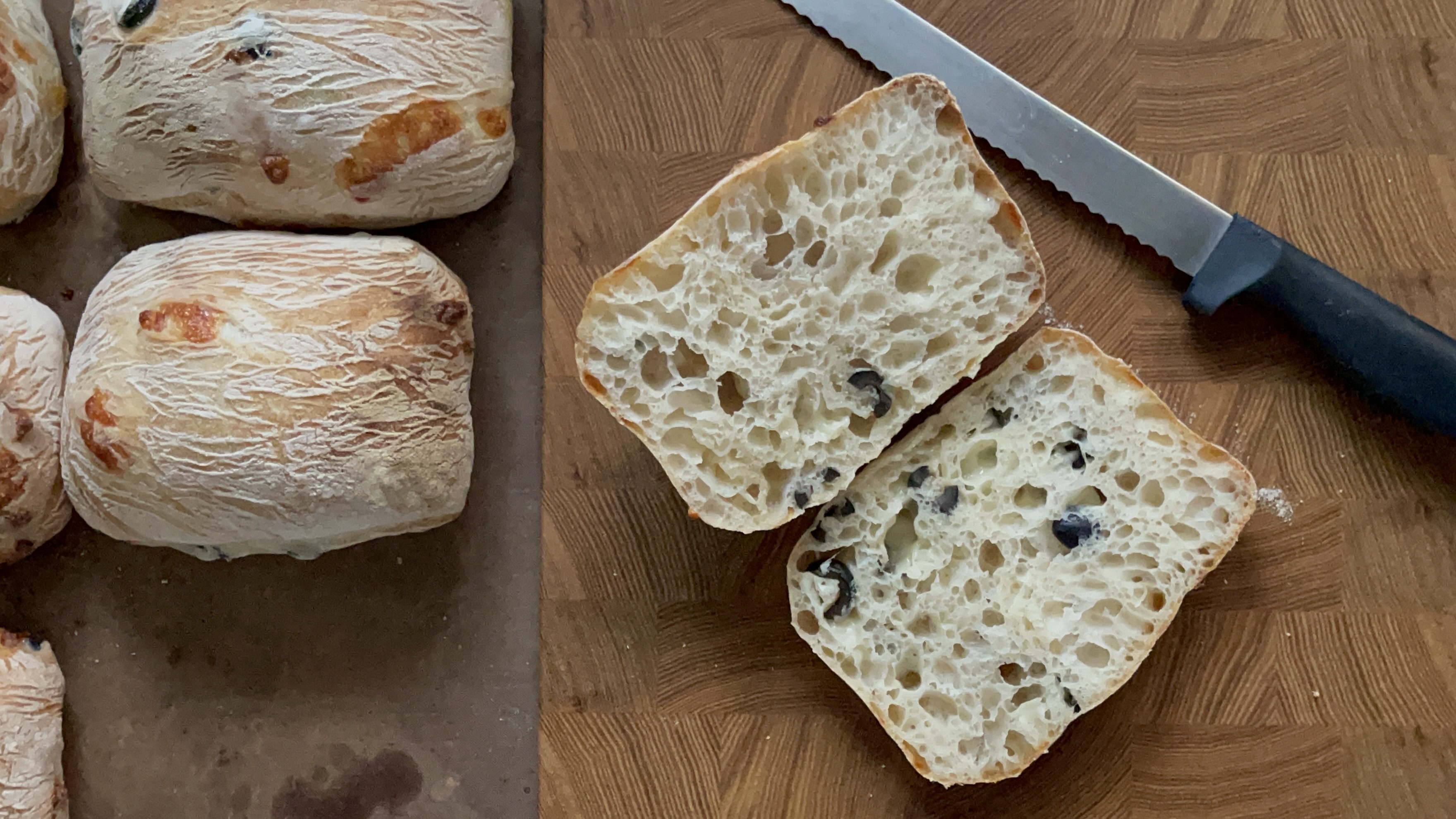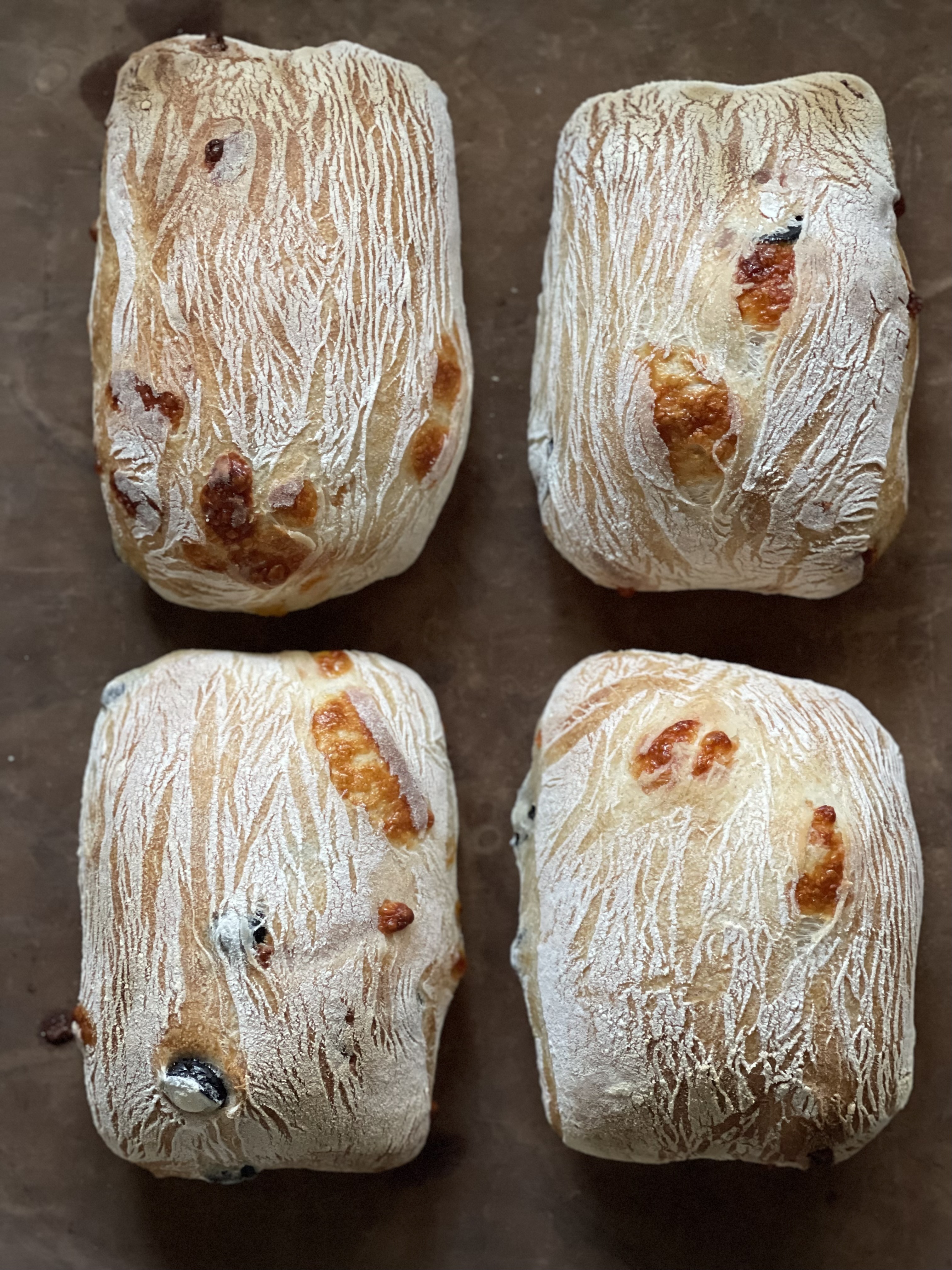 치아바타는 갓 구웠을 때와 냉동 후 다시 구웠을 때의 차이가 가장 큰 빵이라고 생각해왔다. 그런데 이번엔 풀리쉬로 만들어서인지 시간이 지나도 쫄깃하고 부드러움이 오래 유지됐다. 냉동했다 다시 구워도 갓 구운 듯 맛있었고, 올리브와 치즈 덕분에 이 자체로도 충분히 훌륭하다.
