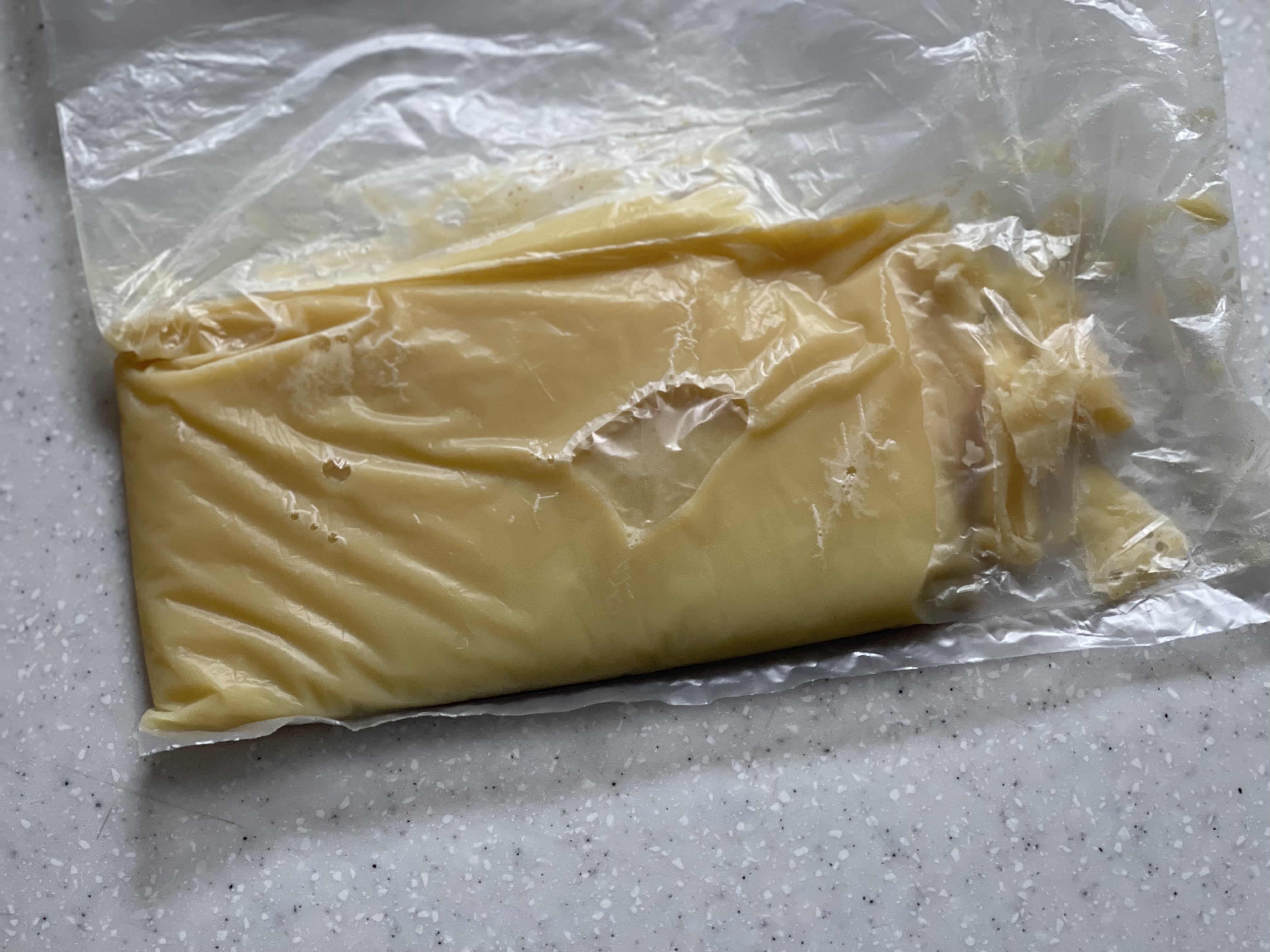 버터 190g을 끓였고 약 15%가 증발되었다. 레시피에 필요한 양은 150g이다.