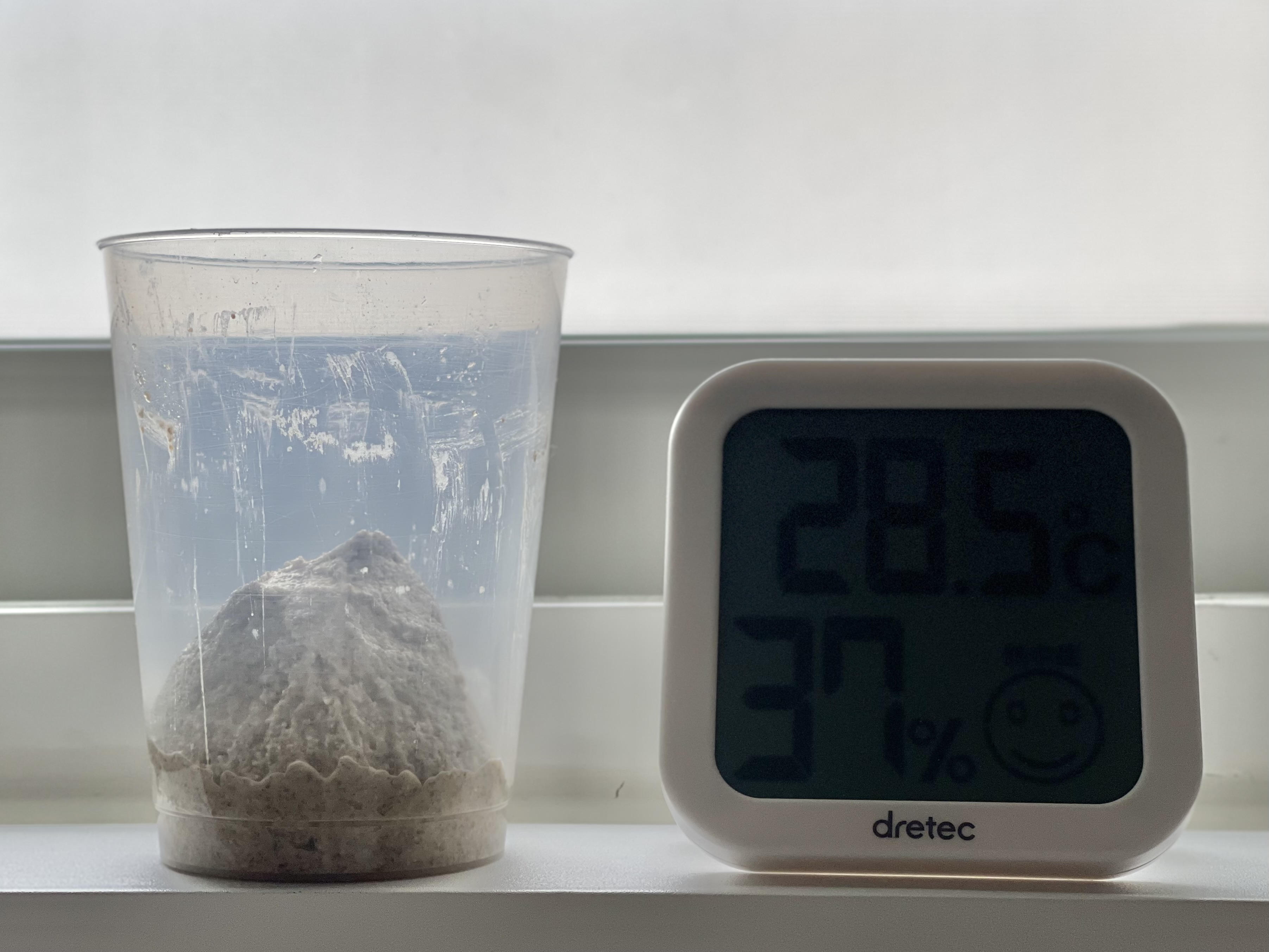 6시간 반 후엔 약 2배 부풀었고, 1시간 뒤엔 살짝 가라앉기 시작했다.