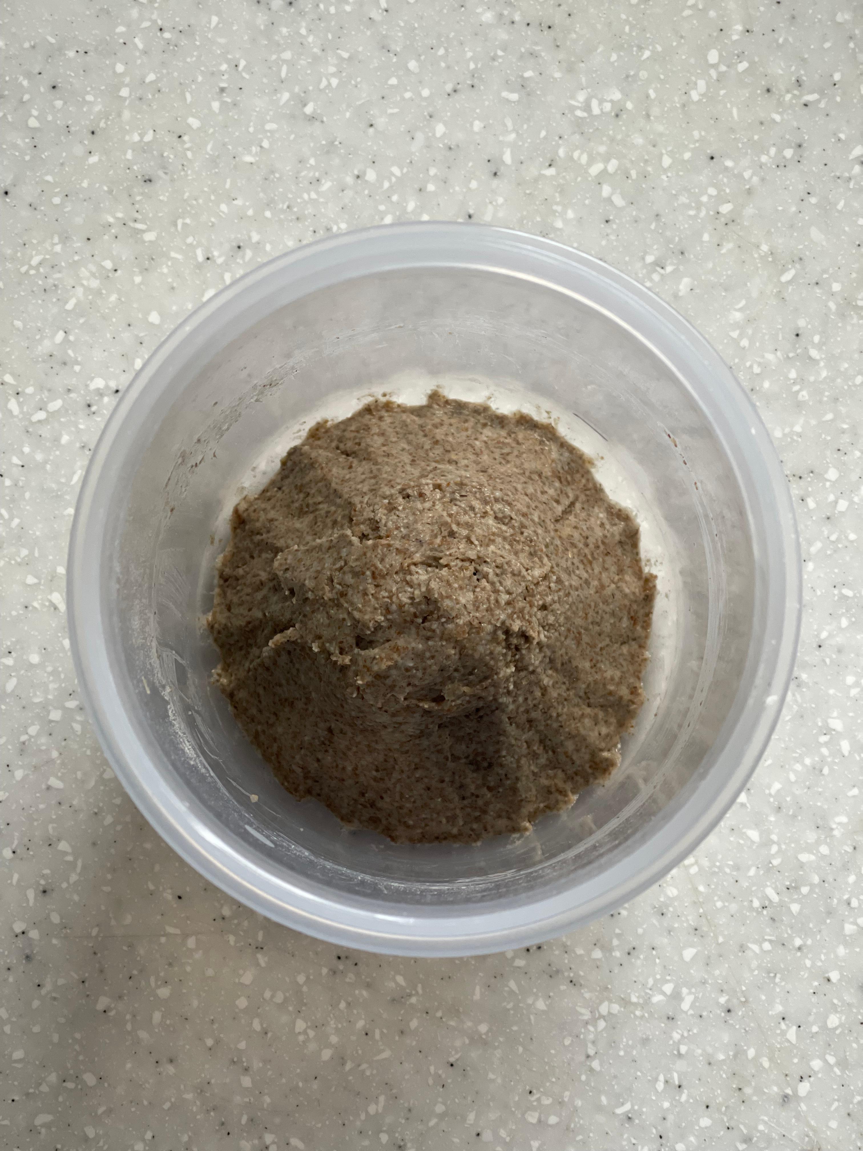 전날 만들어 냉장 보관한 호밀종 2g에 수돗물 40g, 호밀가루 40g을 넣어 밥을 주고 5시간 동안 발효시켰다.