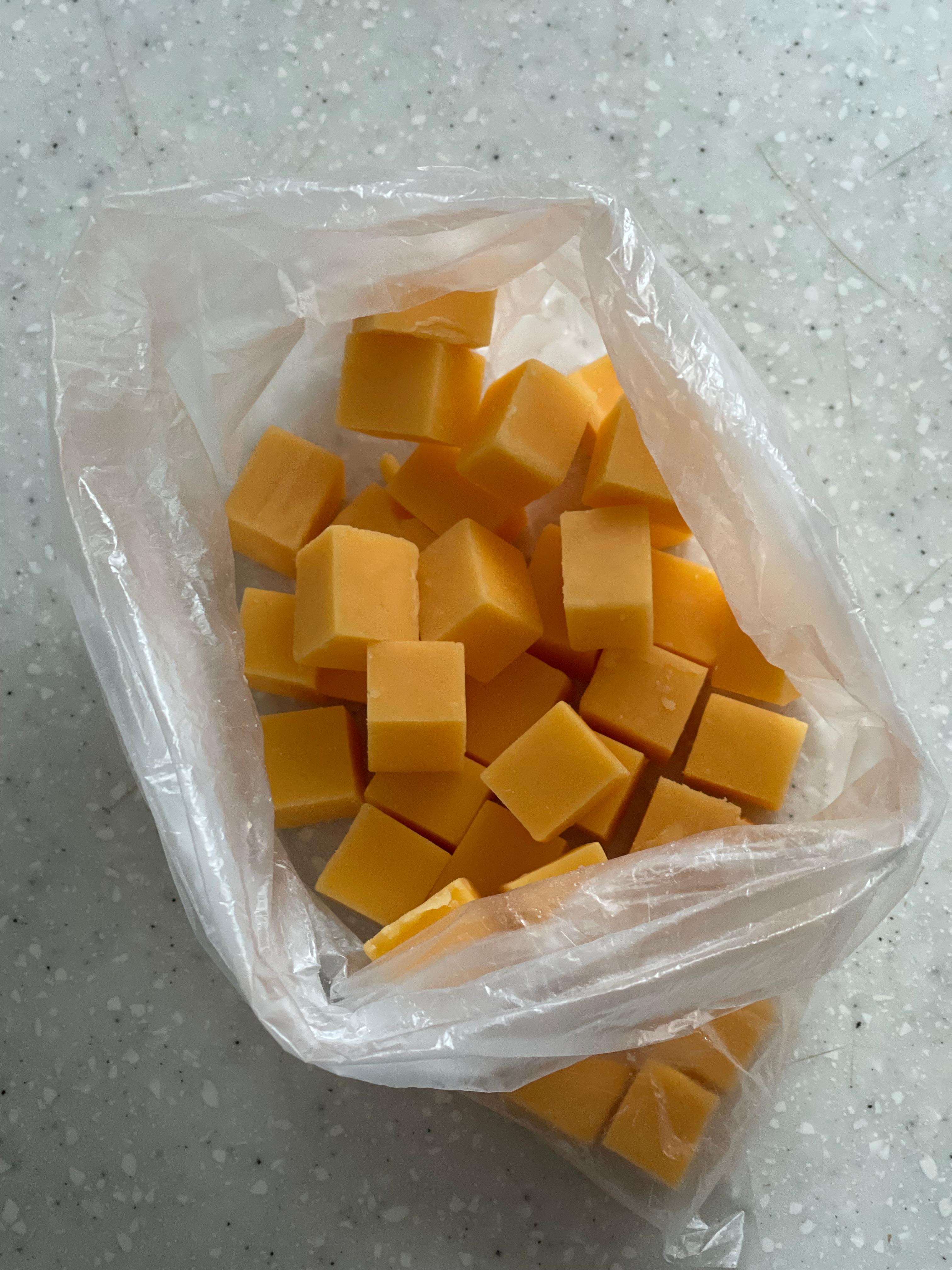 콕콕 박힌 노란 체다 치즈와 은은한 분홍빛 크럼. 자르는 내내 구운 토마토 향이 퍼져나갔다.