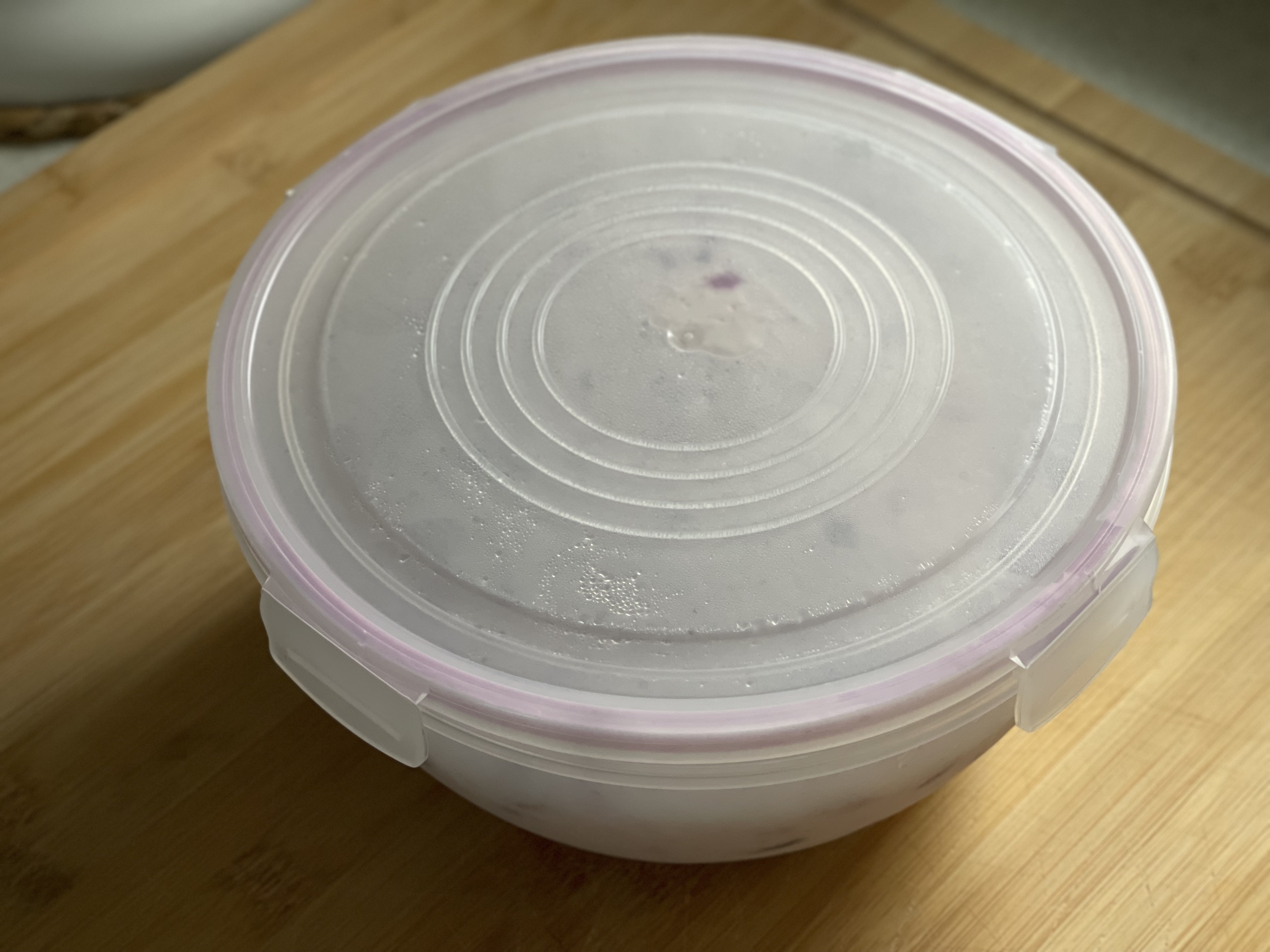 본반죽은 냉장 온도의 물과 블루베리를 사용해 최종 반죽 온도를 26도로 맞췄다. 냉동 블루베리는 전날 미리 냉장고로 옮겨 해동해 두었다.
