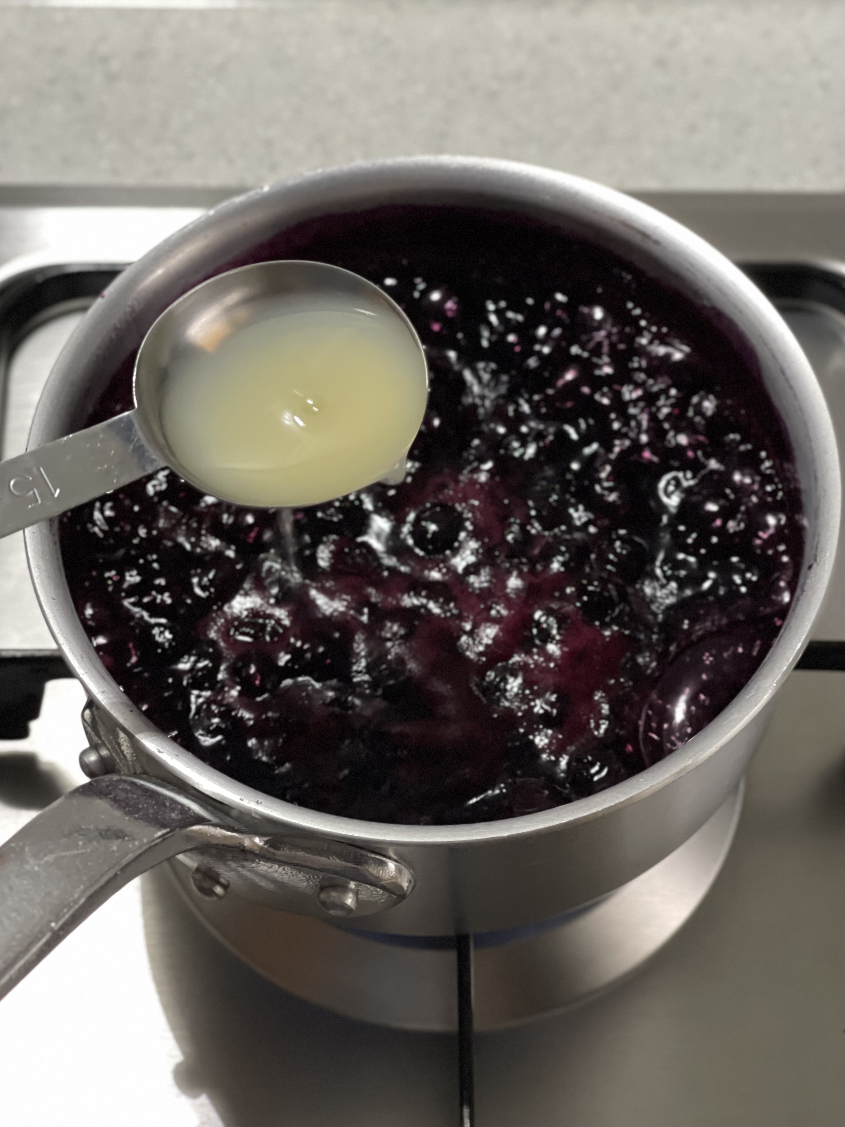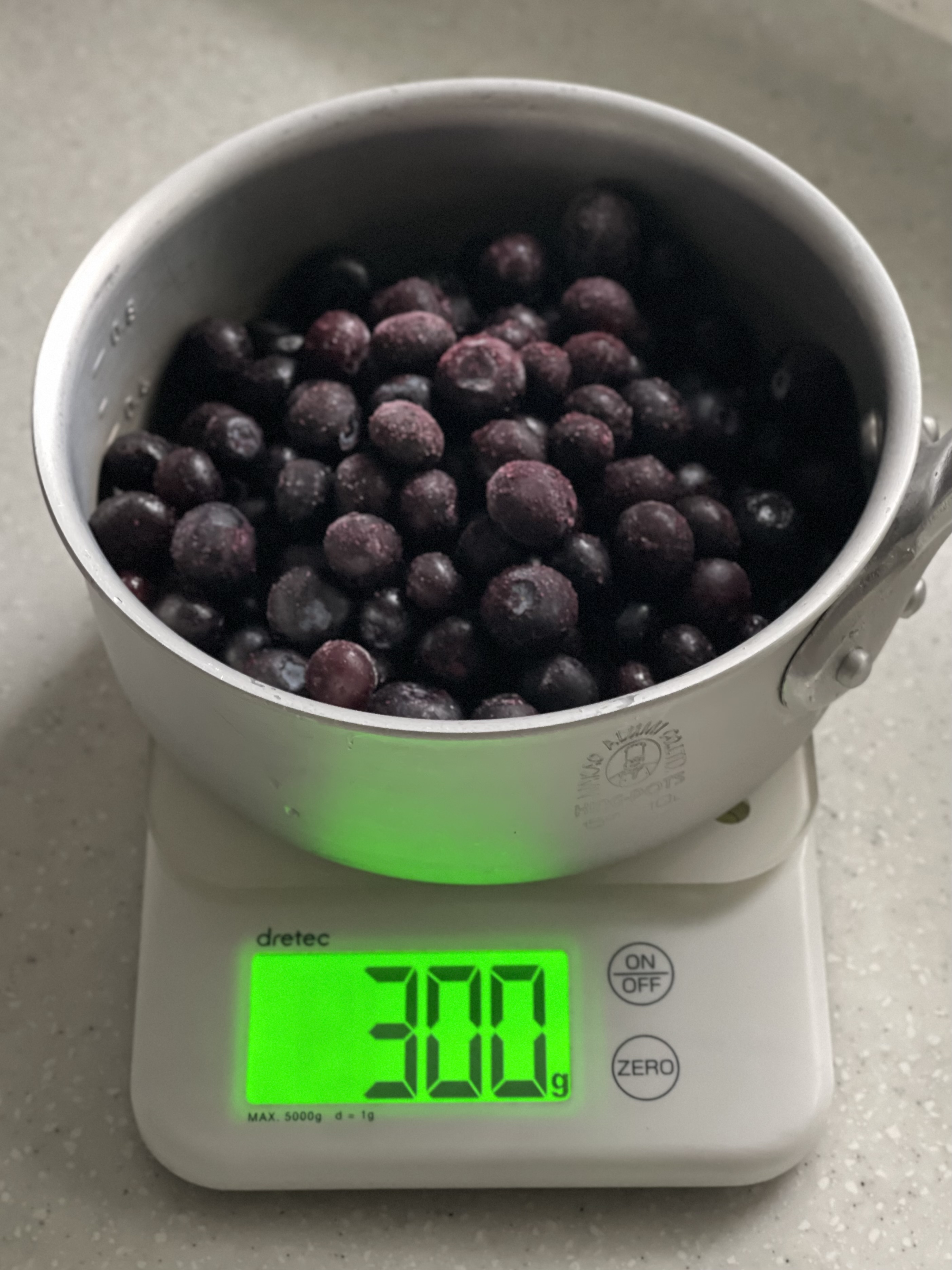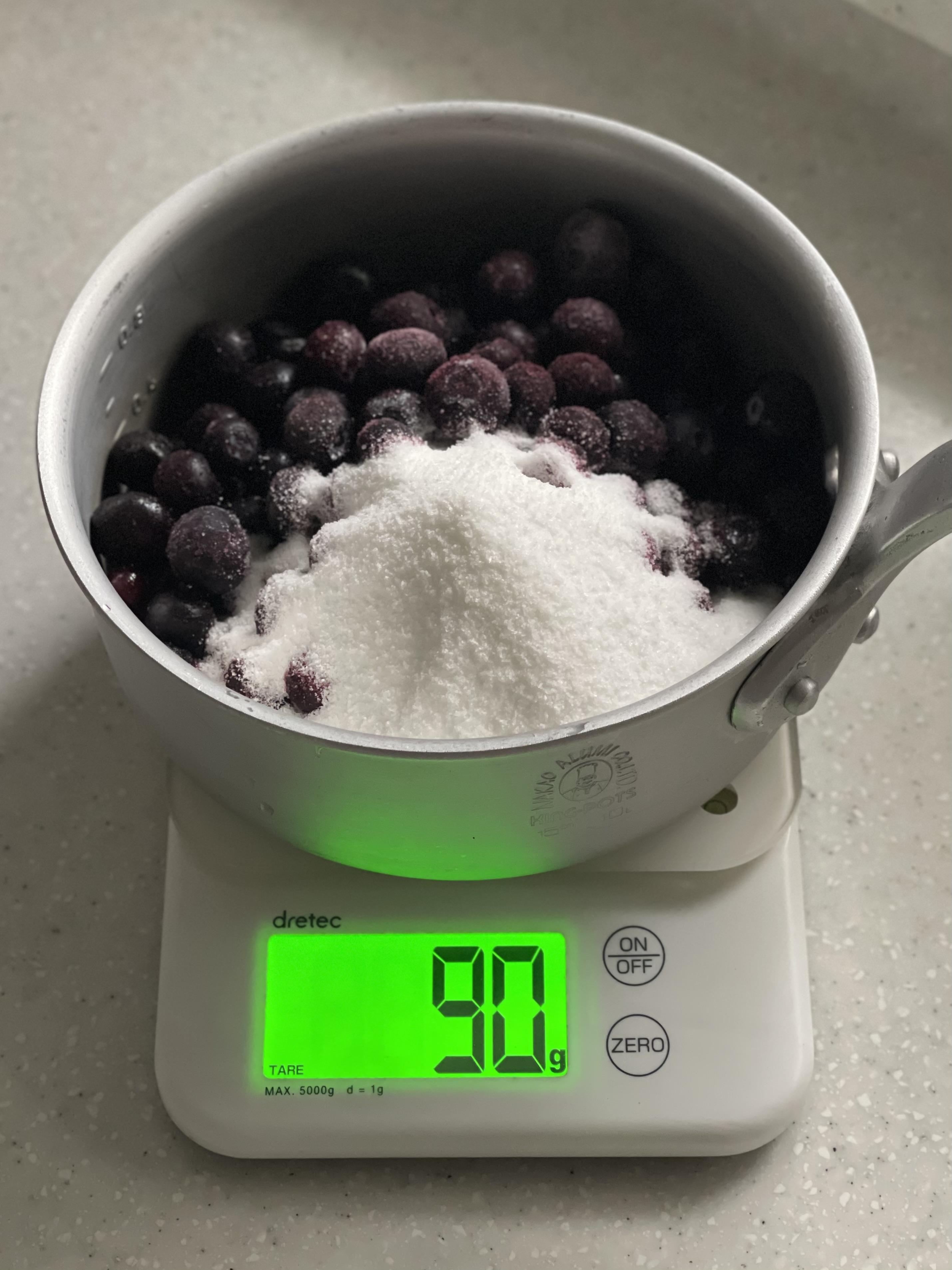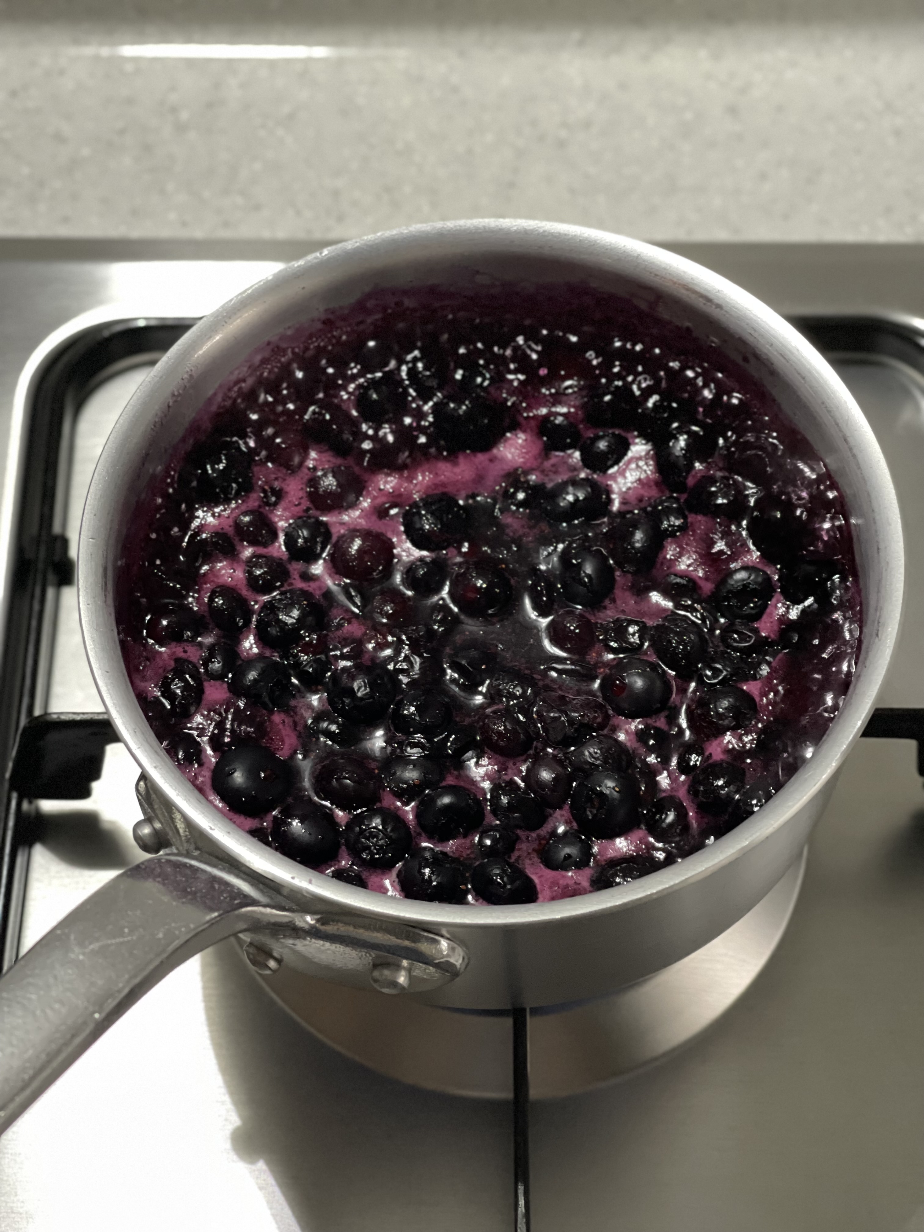 - 블루베리와 알룰로스 파우더를 냄비에 넣고 중약불에서 20분간 끓인다.