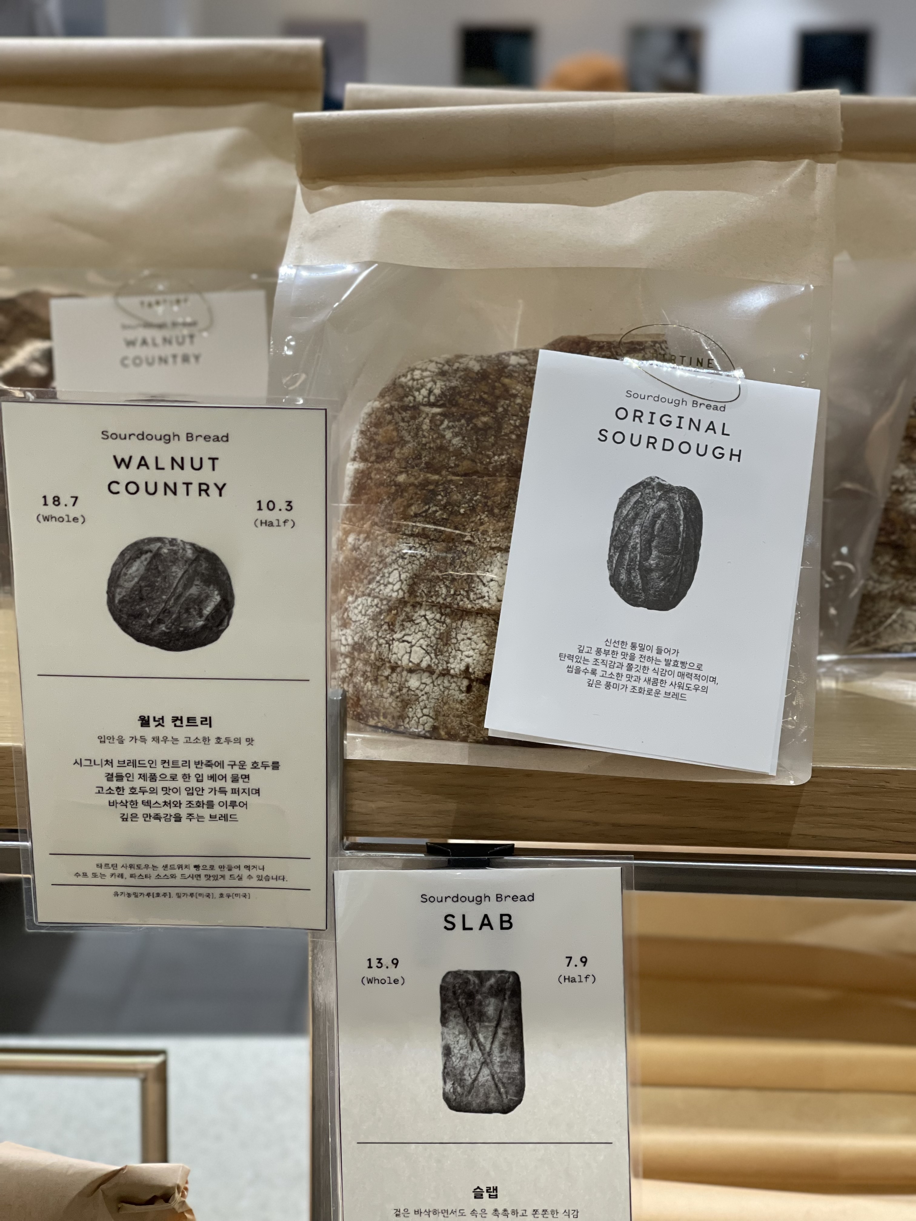 매장 한켠에는 포장된 사워도우가 한가득 진열되어 있었다.