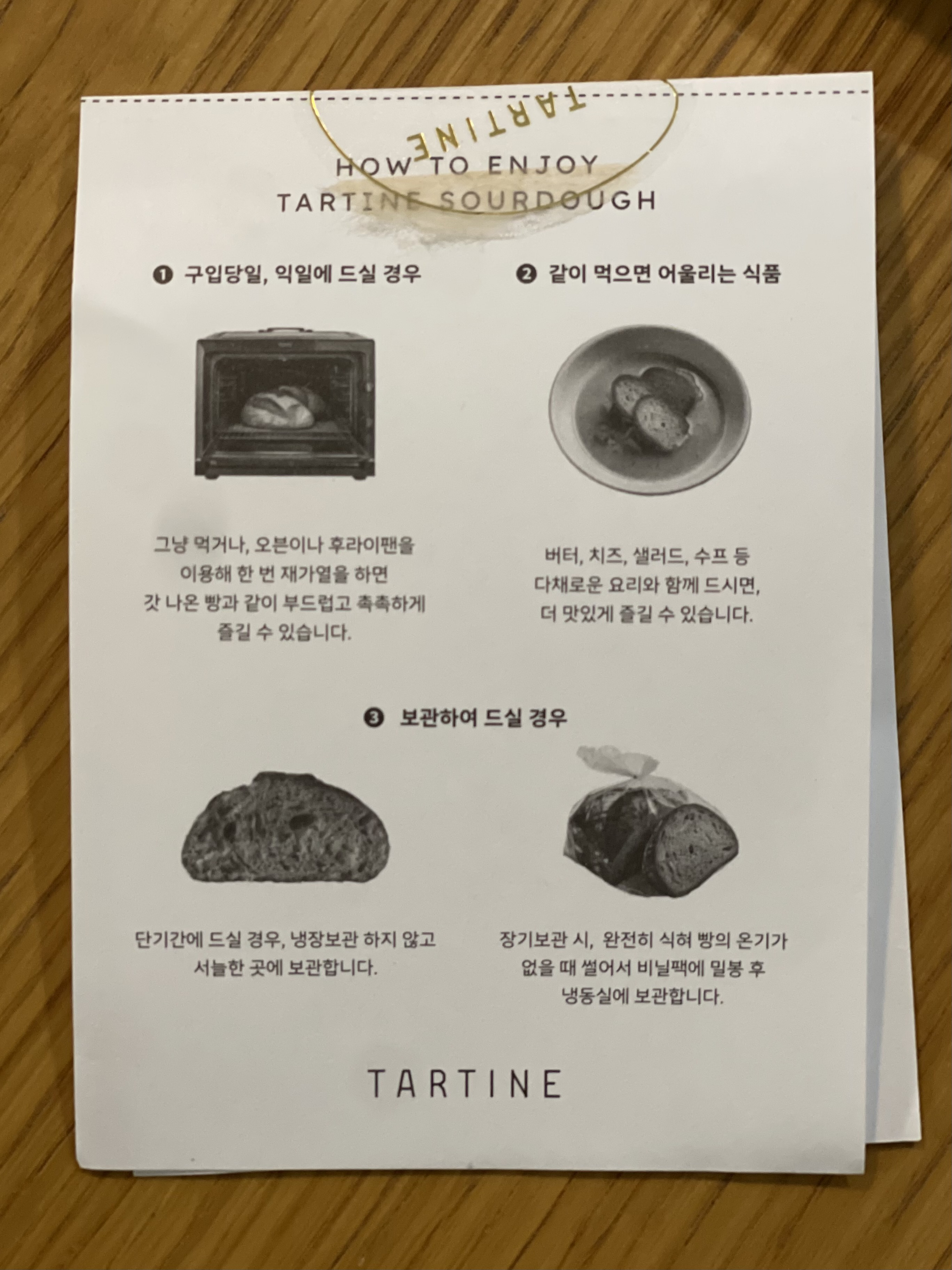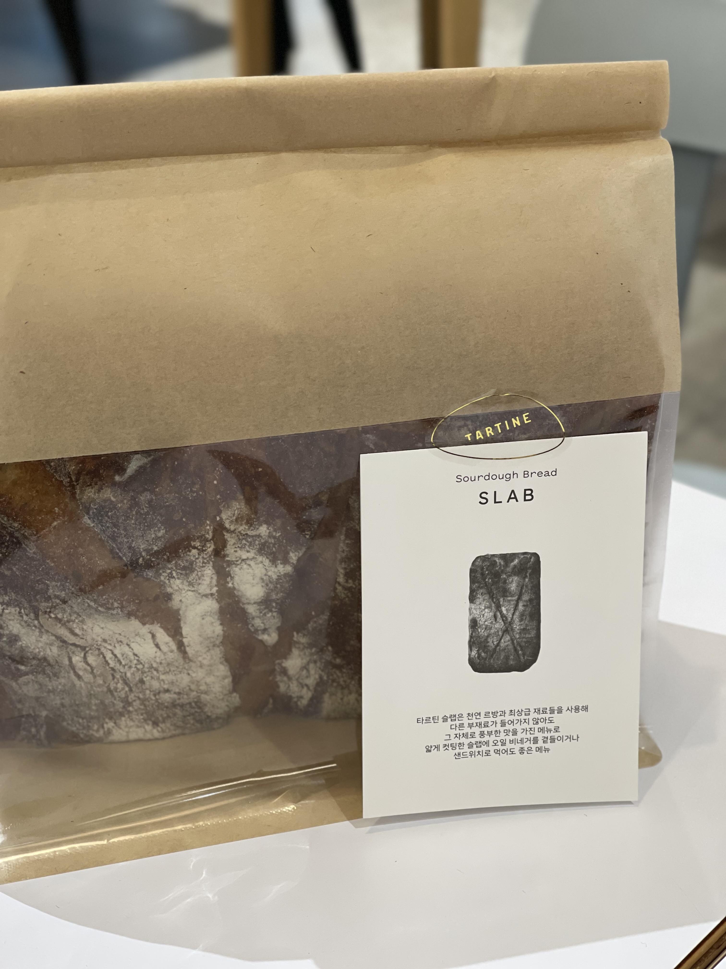 우리집 냉동실 한 칸은 언제나 내가 구운 빵으로 가득하다 보니 점점 빵을 사 먹지 않게 되었다. 특히 슬랩 스타일 플랫 브레드는 여러 번 따라 만들어 먹으면서 꽤 만족스러웠지만, 마음 한편엔 늘 ‘오리지널은 어떨까?’ 하는 호기심이 남아 있었다. 한동안 매일같이 플랫 브레드를 굽던 시절이 떠올라, 용산아이파크몰에 간 김에 타르틴 베이커리에 들렀다.
