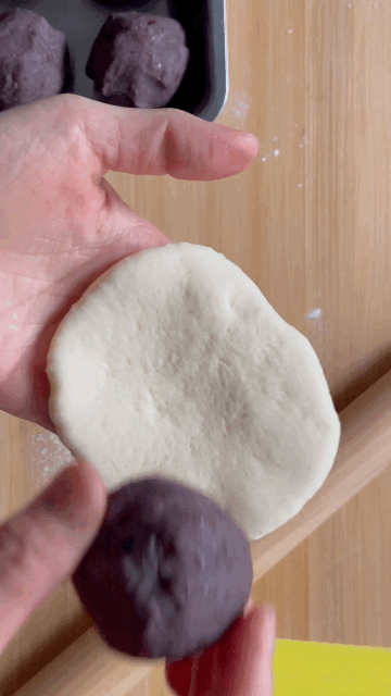 미리 50g씩 둥글려 둔 팥앙금을 넣고 동그랗게 감싸 성형한다.