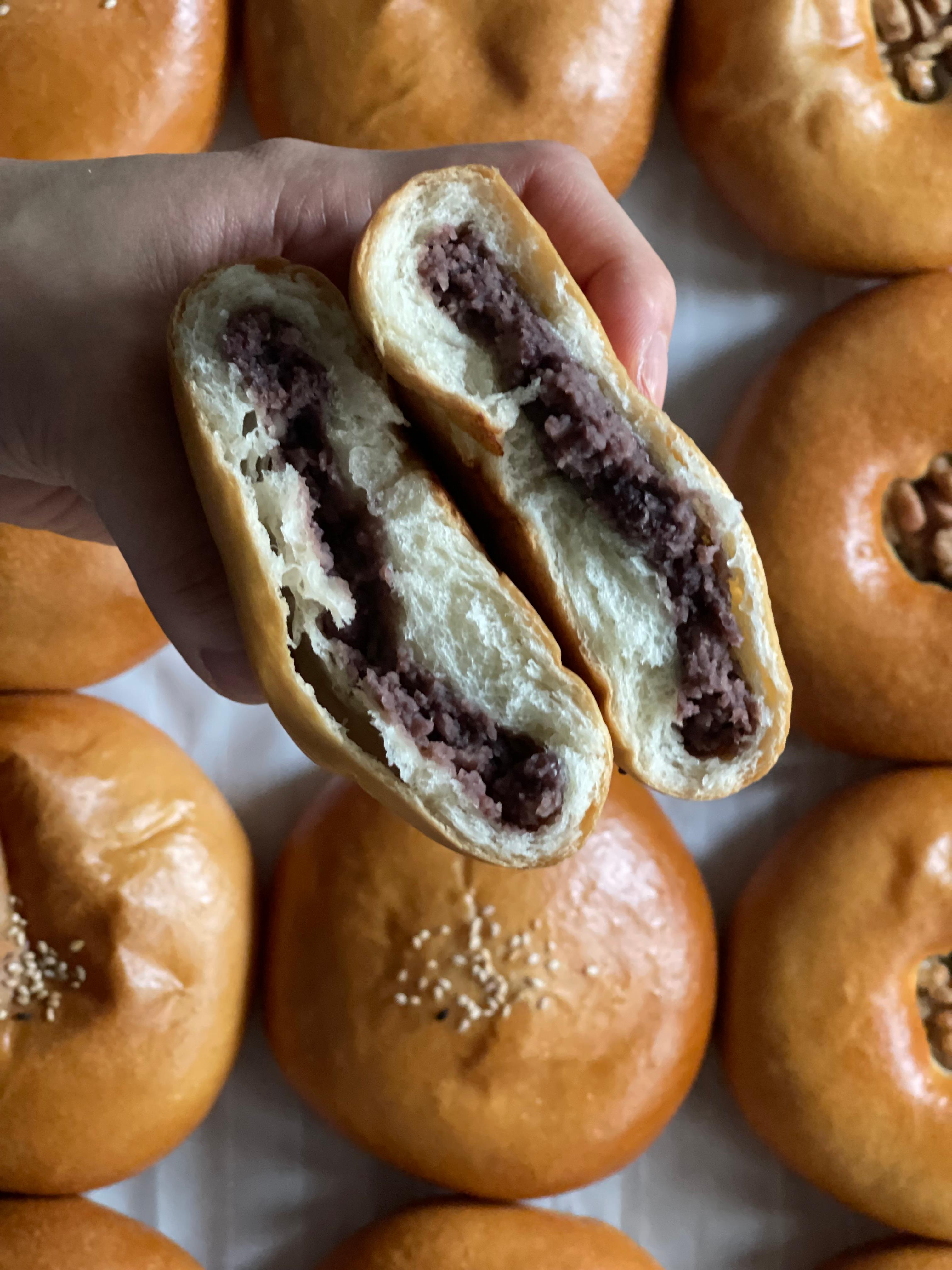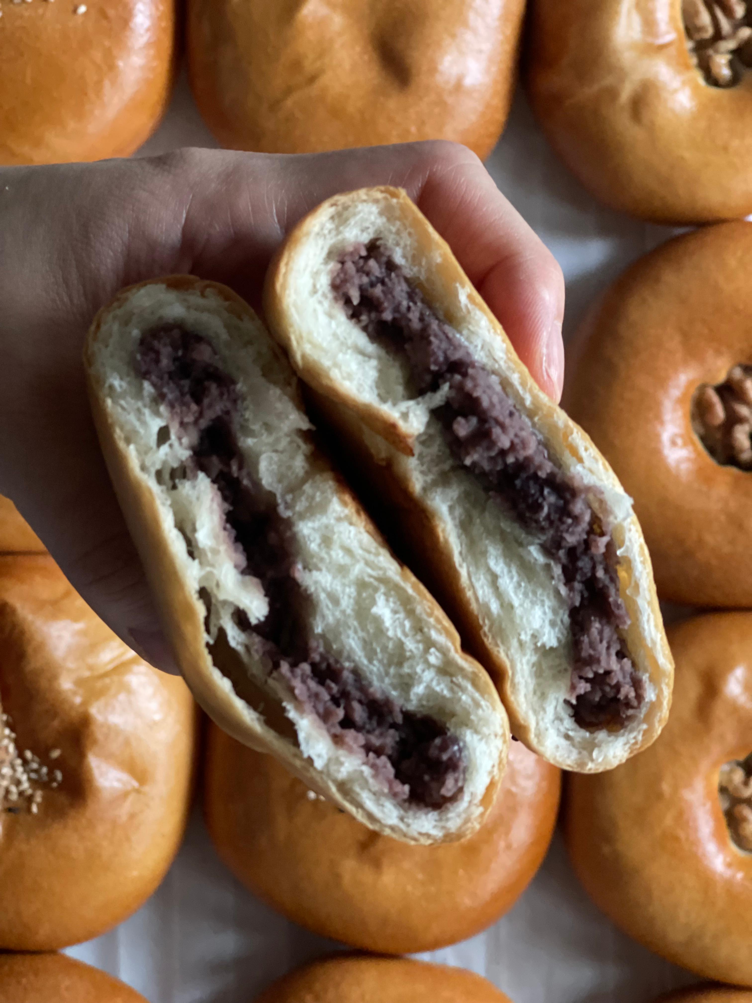 호두를 박지 않은 단팥빵은 앙금과 빵 사이에 공간이 생겨서 생크림을 넣기 좋다.