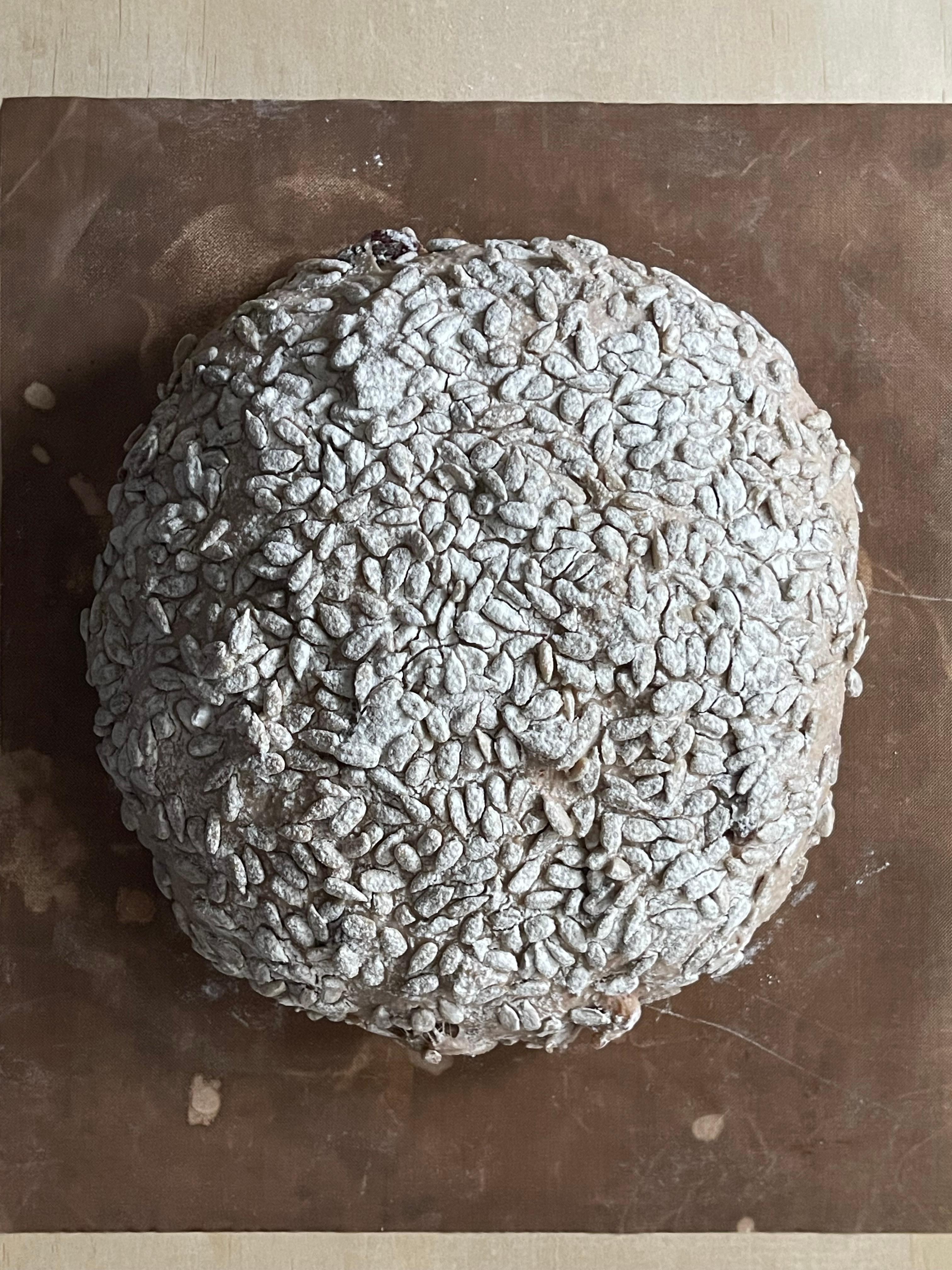 해바라기씨를 고루 붙인 뒤 덧가루를 살짝 뿌렸다.