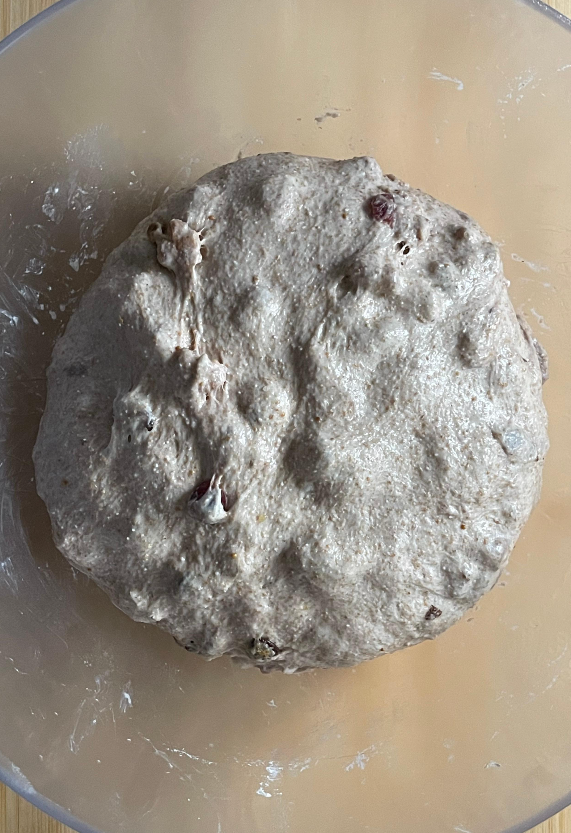 통밀가루와 T55가 들어가 글루텐 형성이 쉽지 않아 1차 발효 중간에 펀치 한 번을 주었다.