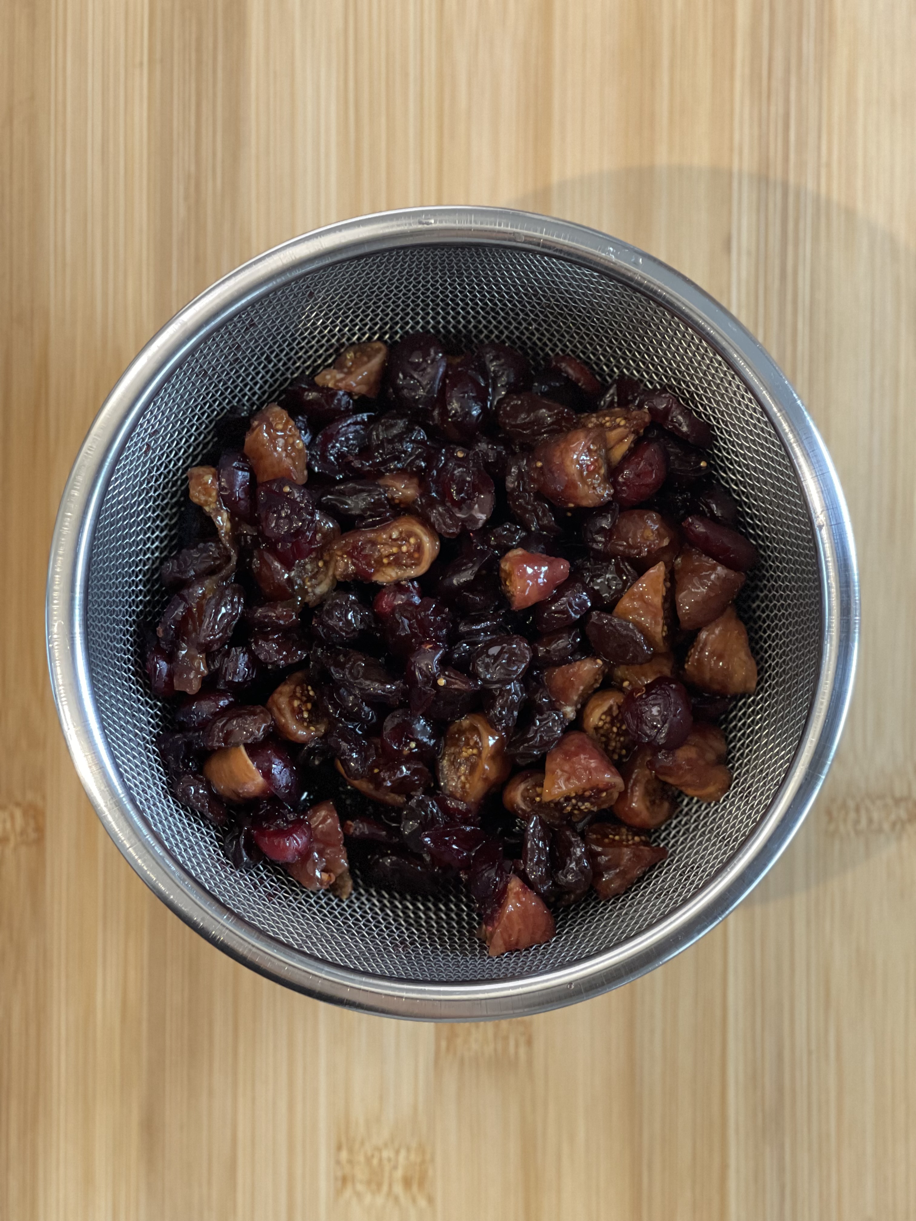 냉장고에 보관 중이던 크랜베리, 설타나, 무화과 와인 절임을 활용했다.