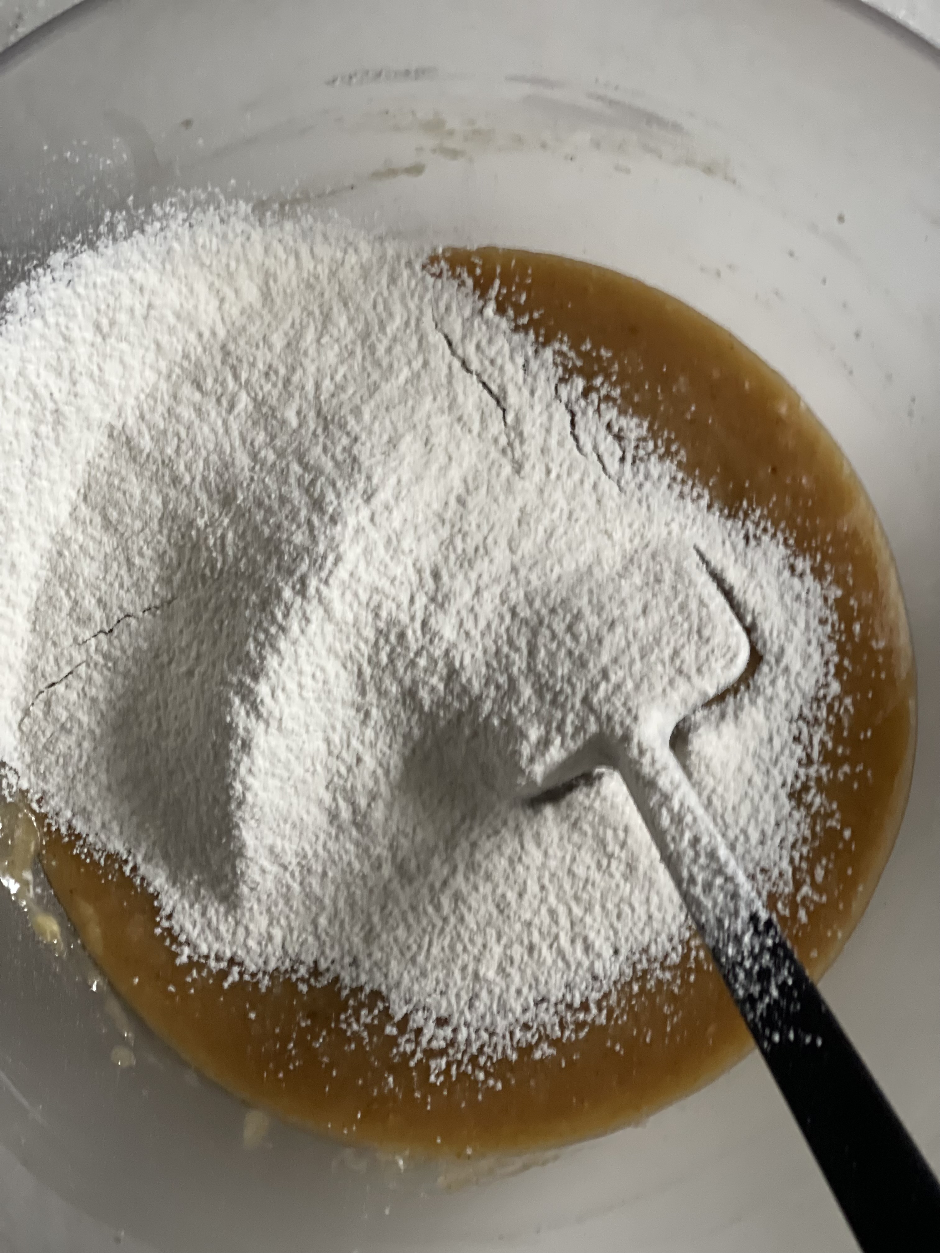옥수수 전분과 팽창제를 먼저 체 쳐 넣은 뒤