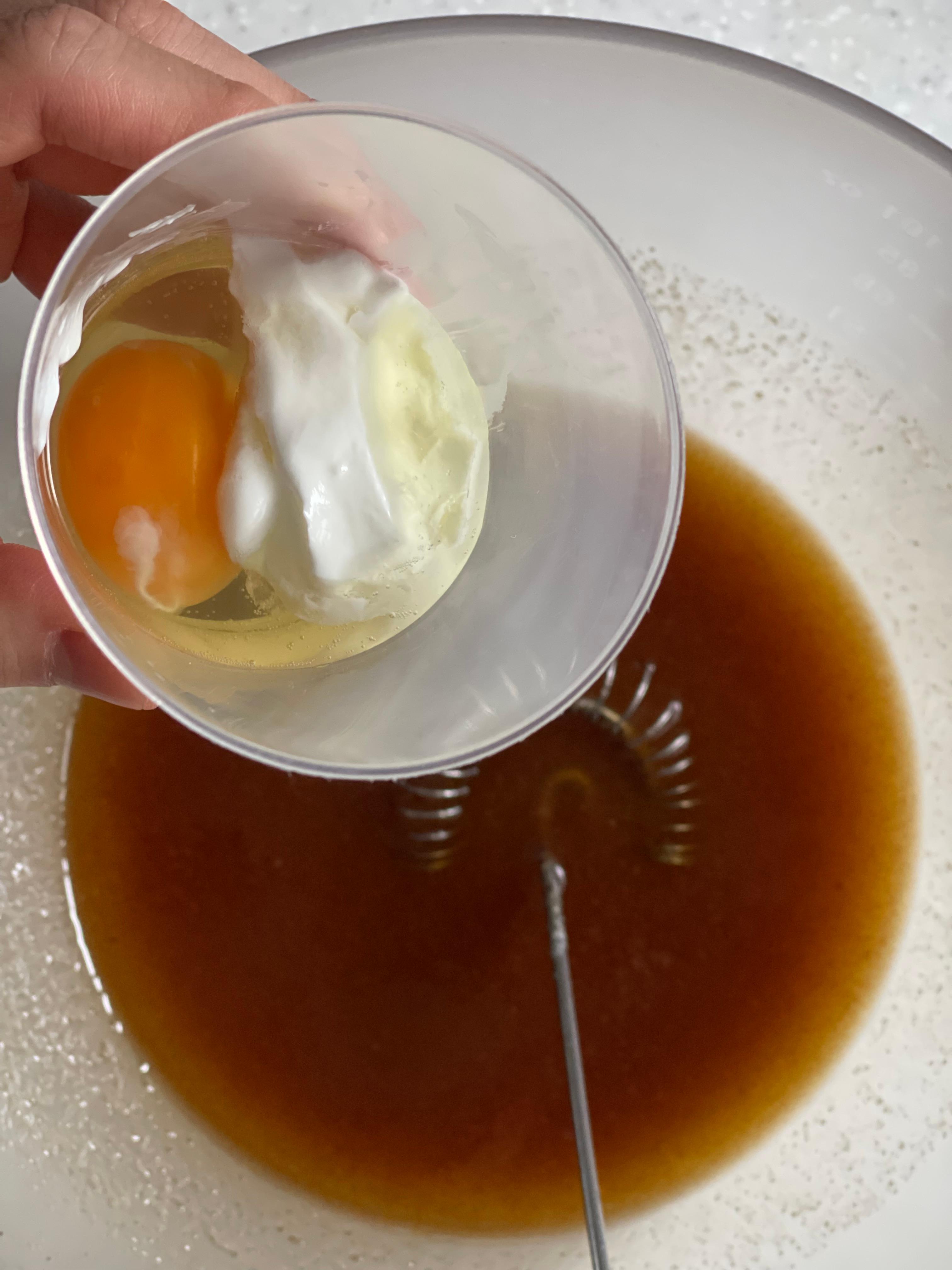 찬기를 뺀 계란과 무가당 요거트를 섞어 넣는다.