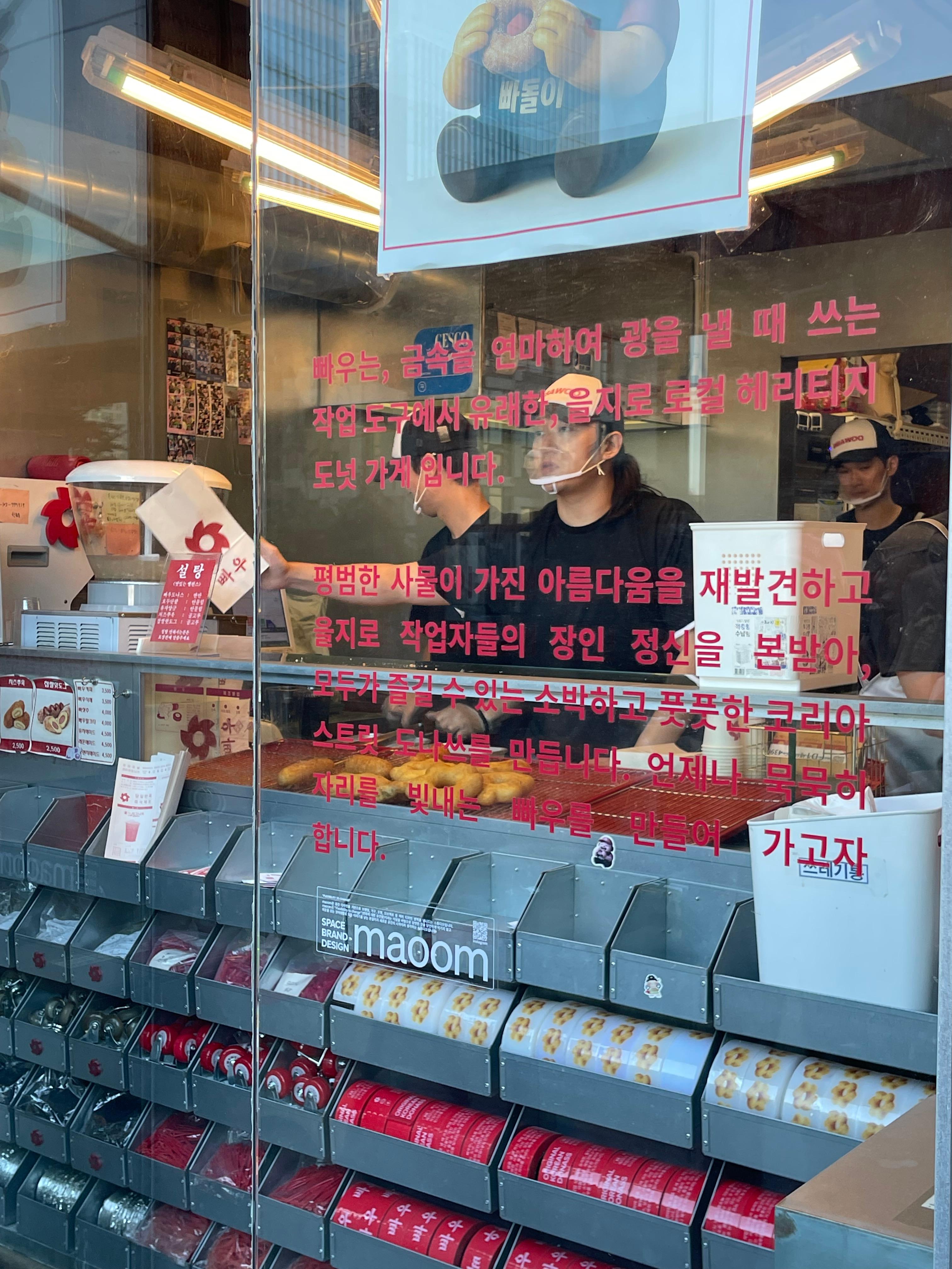 뉴트로하고 힙한 가게들이 즐비한 을지로 하늘길에 자리한 찹쌀 도나쓰 맛집 빠우 을지로점.