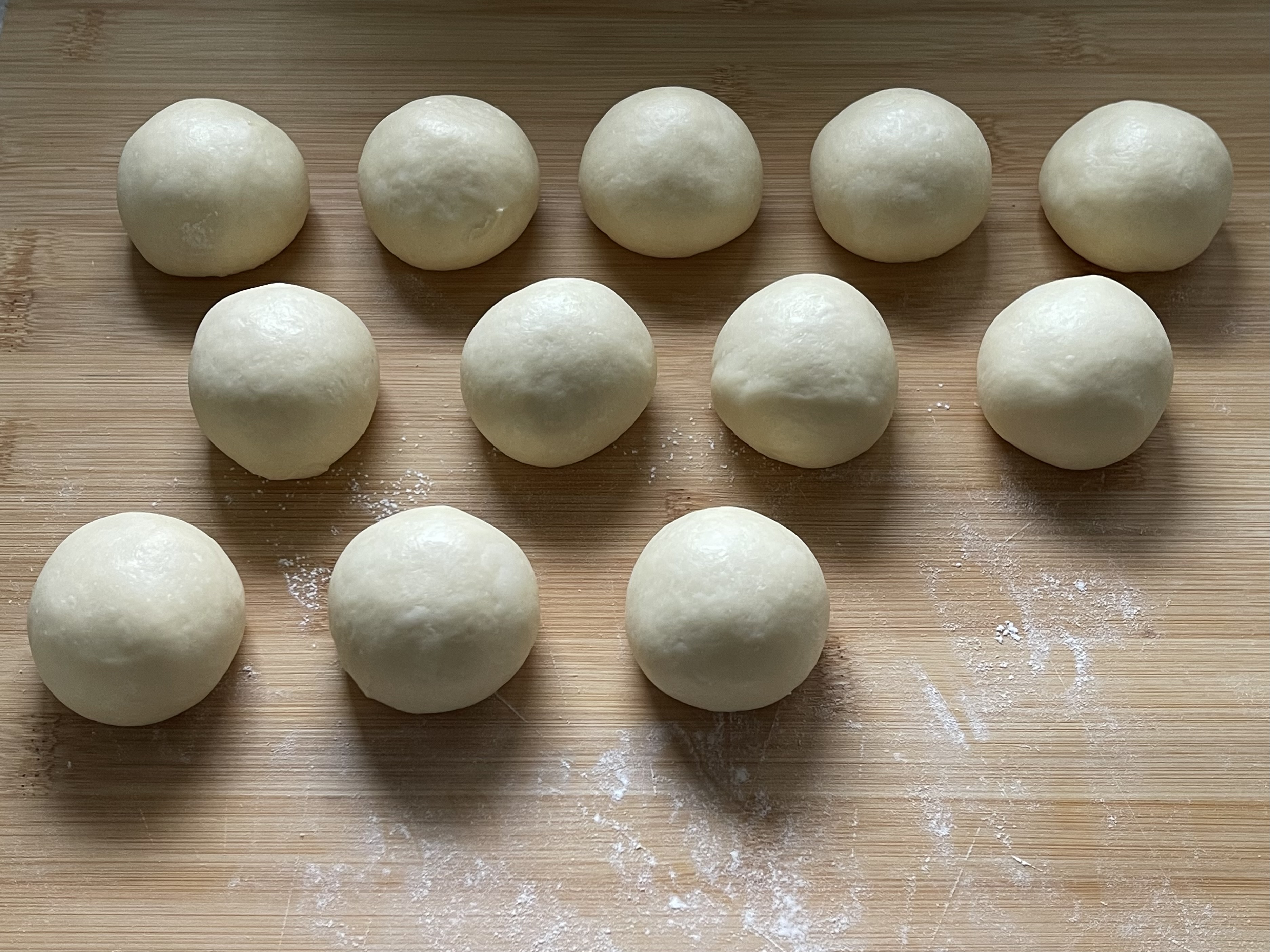반죽은 52g씩 12개로 나누고 20분 벤치타임을 두었다.
