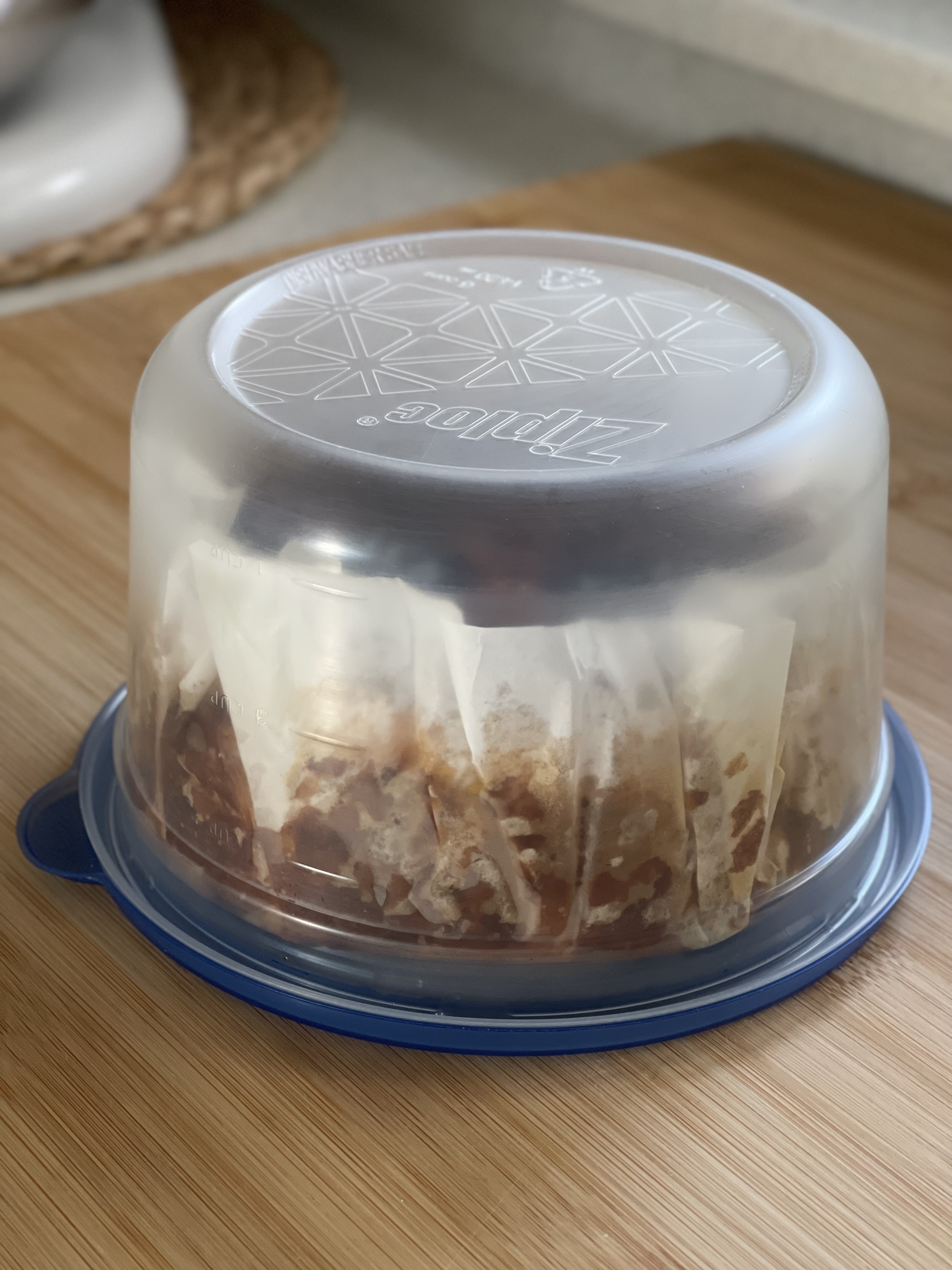 충분히 식힌 뒤, 원형 용기에 거꾸로 넣어 냉장고에서 하루 동안 숙성했다.