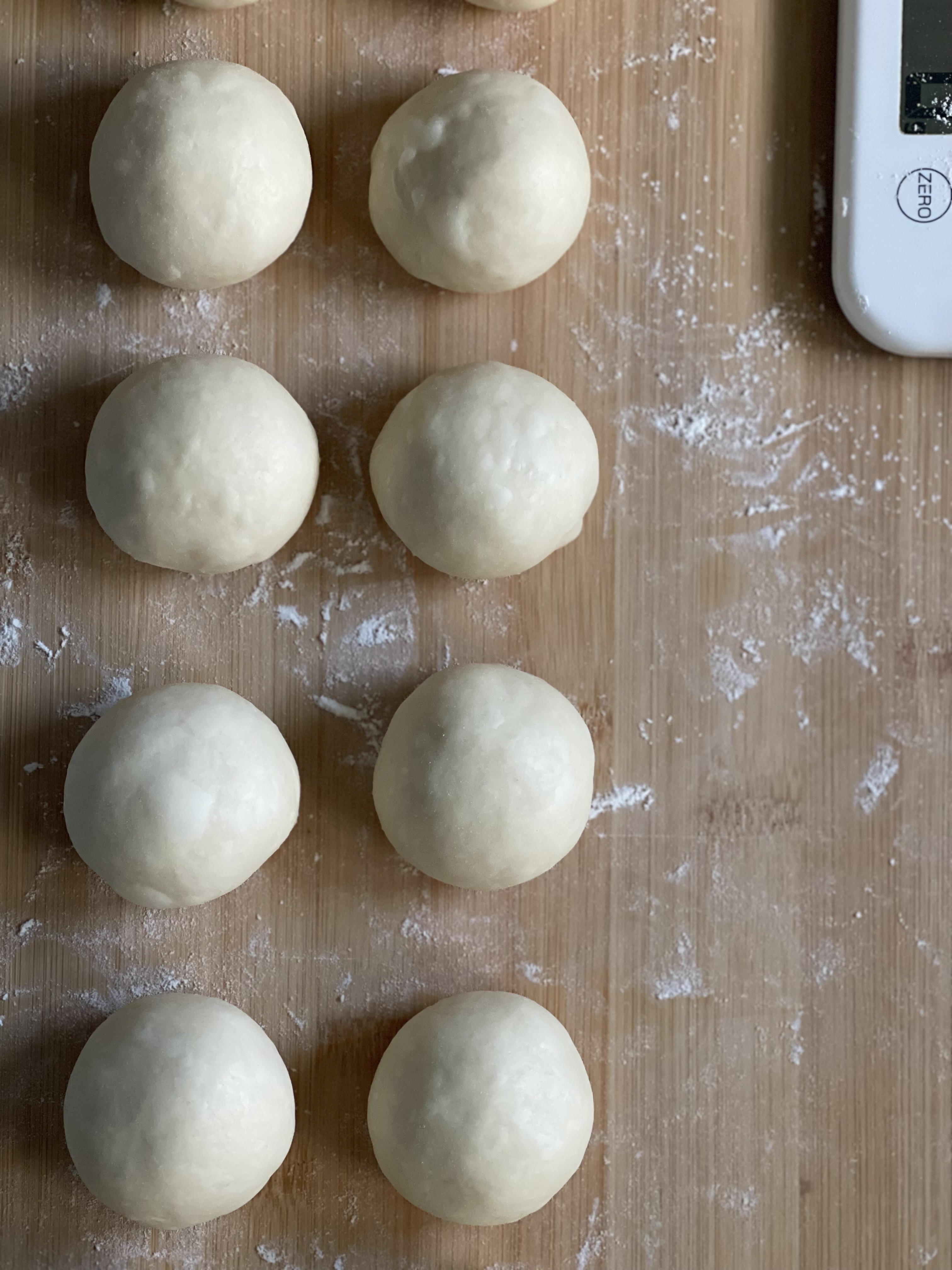 20분 벤치 타임. 이 중 5개는 버터롤용, 7개는 단팥빵용.
