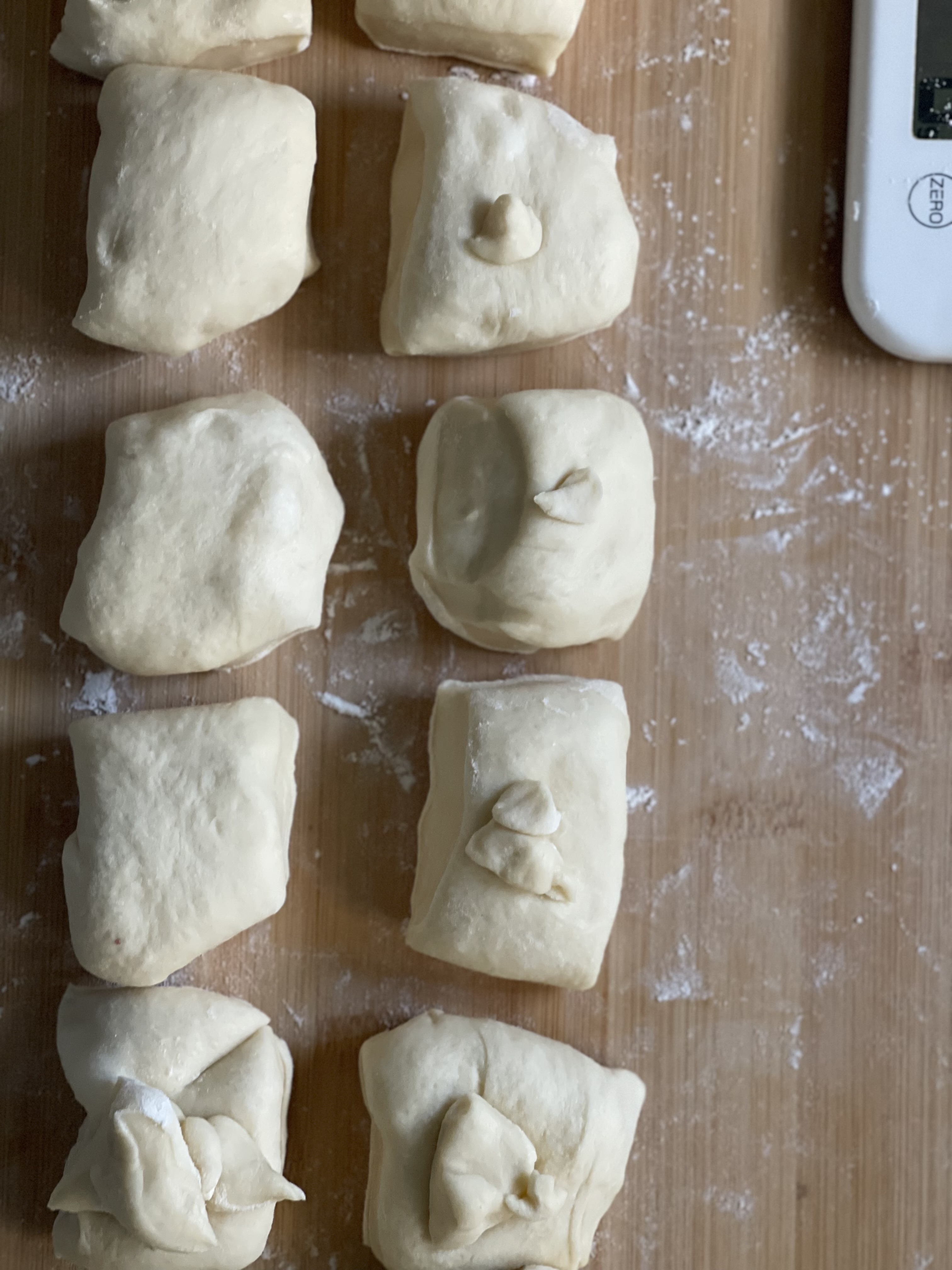 이번엔 단팥소를 개당 60g으로 늘려 넣었더니 평소보다 더 묵직했다. 소가 많다 보니 이음매가 자꾸 벌어져서 성형이 쉽지 않았다. 💦