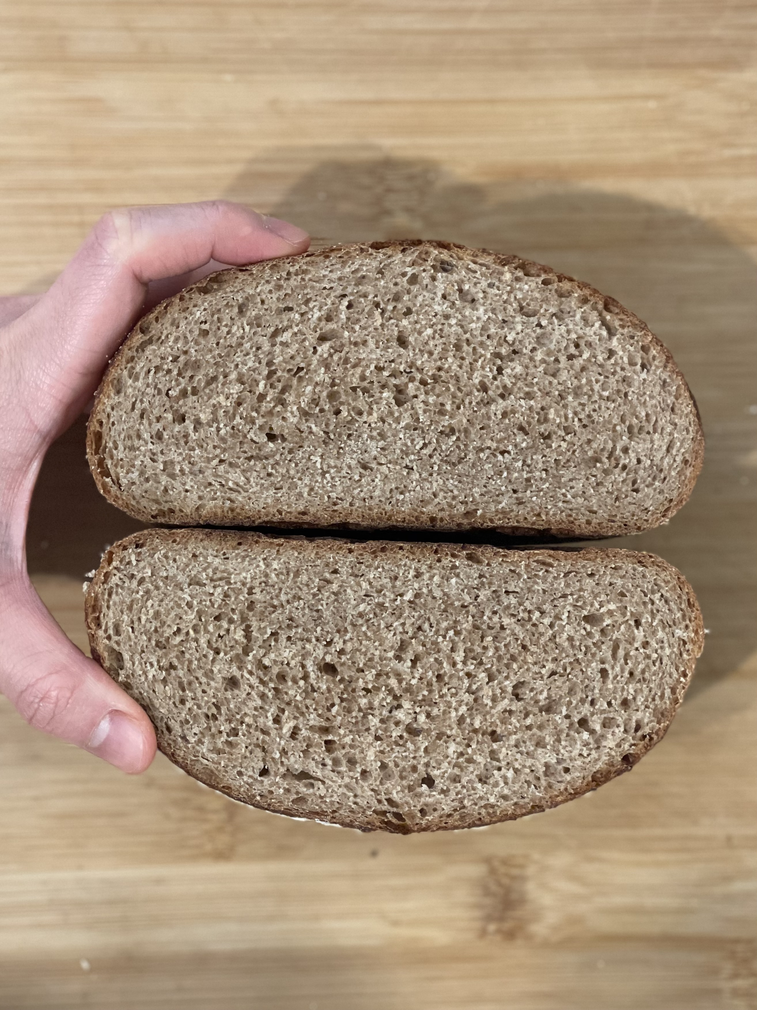 맛은 기존 포리쉐 T150 밀가루의 깊은 풍미와 부드러운 식감에는 미치지 못했지만, 허틀랜드 통밀 특유의 진한 향도 매력적이다.