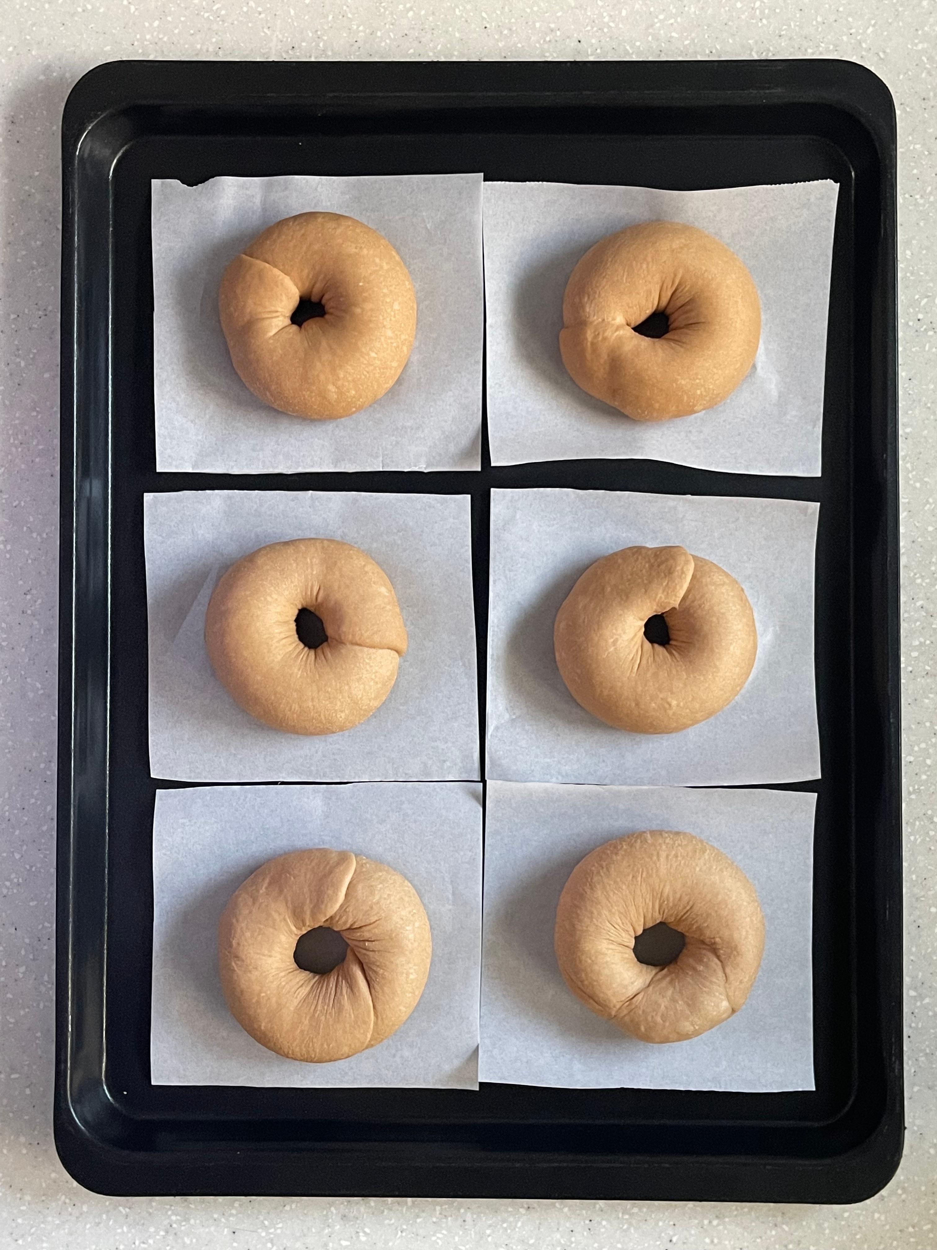 시나몬 베이글에는 과일 절임을, 초코 베이글에는 초코칩을 넣는 게 기본이지만 이번엔 베이글칩을 만들 생각이라 충전물을 생략했다.