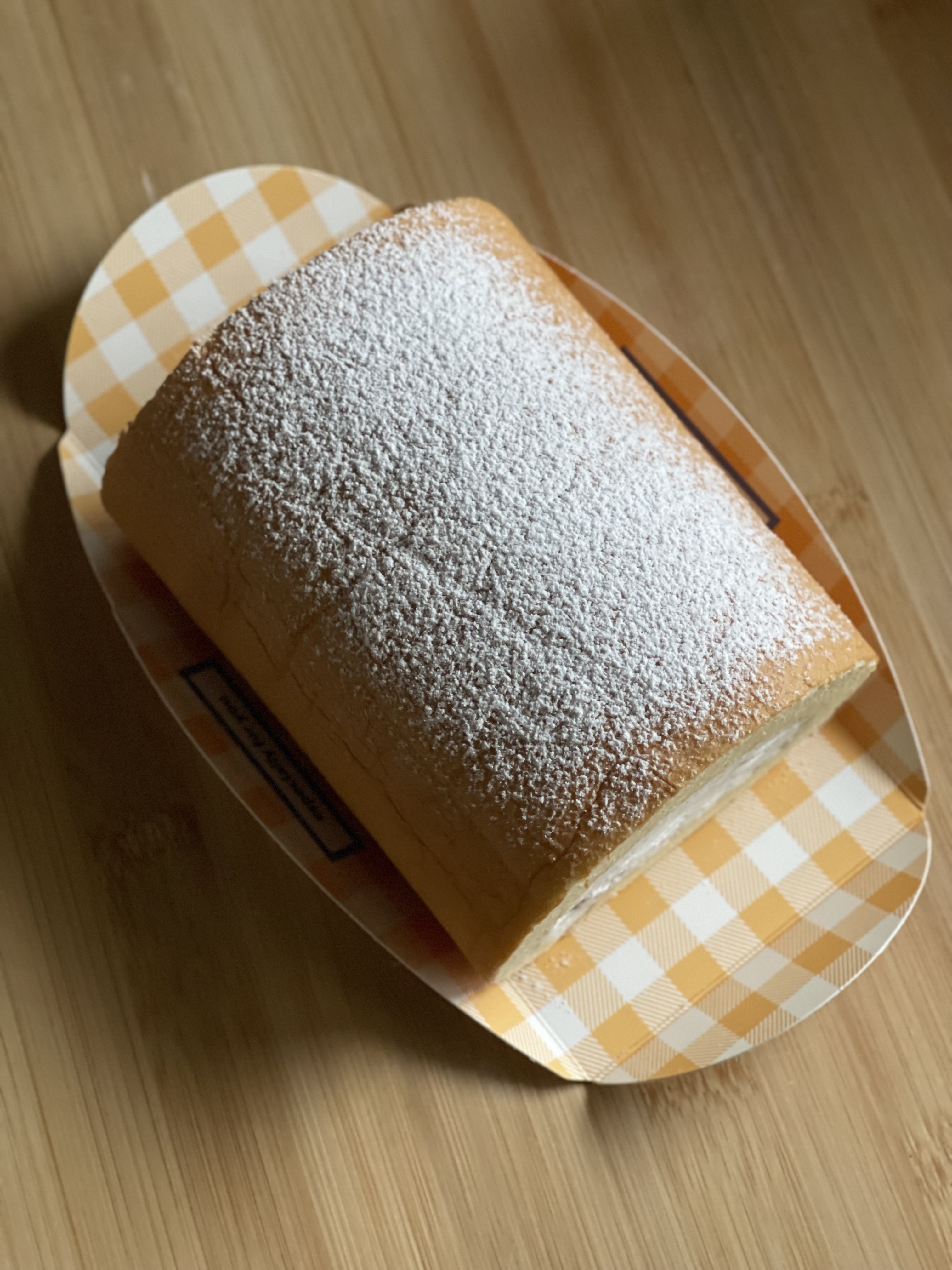 말아낸 상태로 종이호일을 감싸 냉동실에 20분 정도 두었는데, 종이호일을 벗길 때 바깥 껍질이 함께 들리는 바람에 살짝 당황했다. 멀쩡한 부분을 잘라 선물용으로 포장했고, 표면 주름이 신경 쓰여서 슈가파우더를 살짝 뿌려 마무리했다.