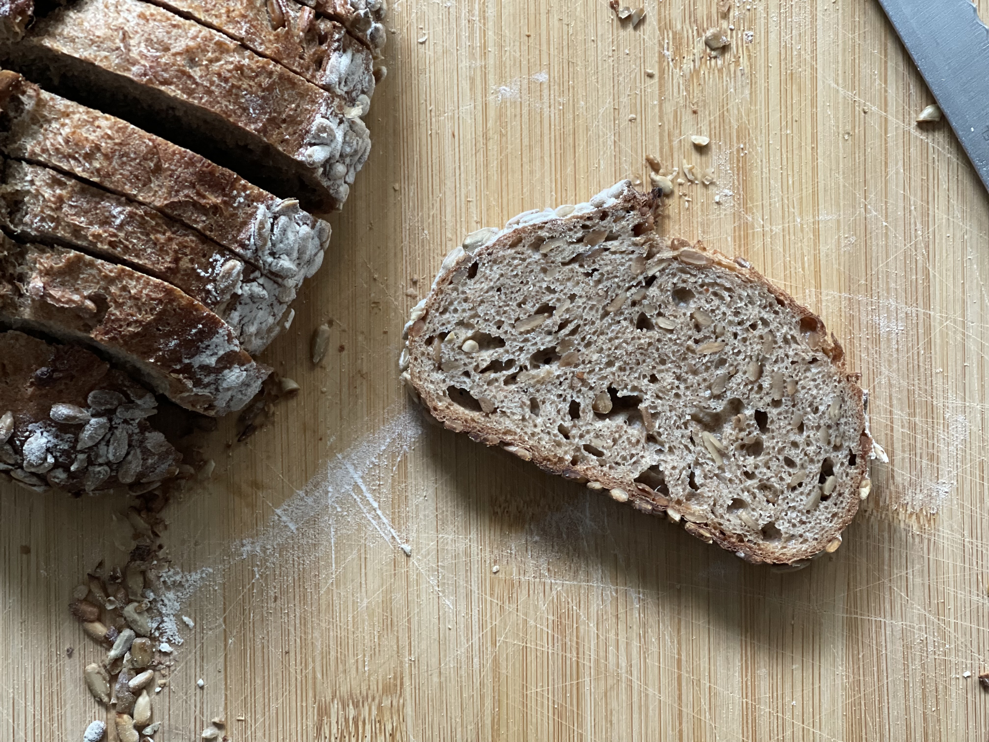 해바라기씨는 26% 넣었는데 더 늘려도 괜찮겠다는 생각이 들었다. 수분율도 조금 더 늘려보고 싶다.