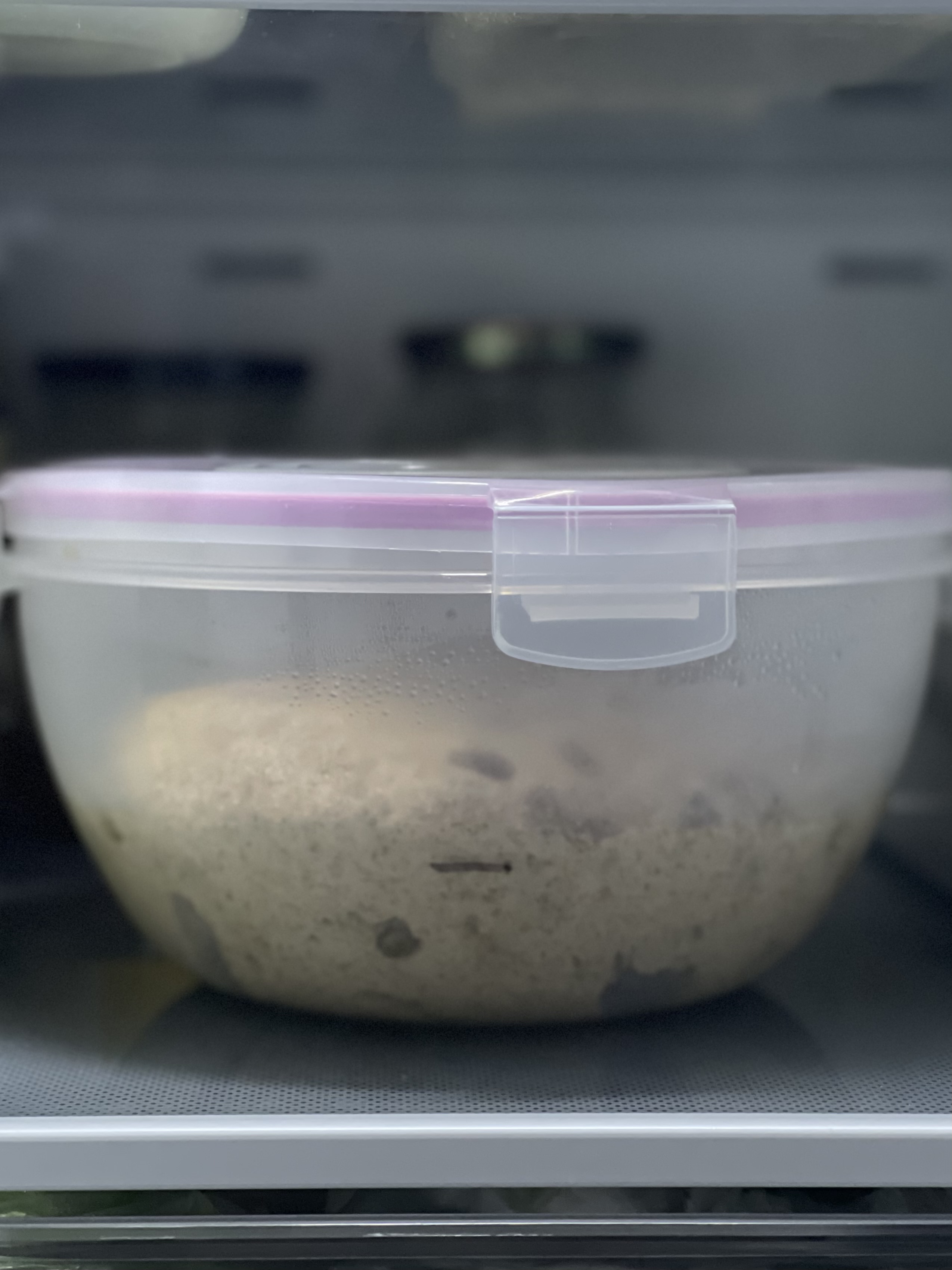 저온 발효를 위해 믹싱 종료 후 30분 실온 발효 → 펀치 → 냉장 발효 순으로 진행했다.