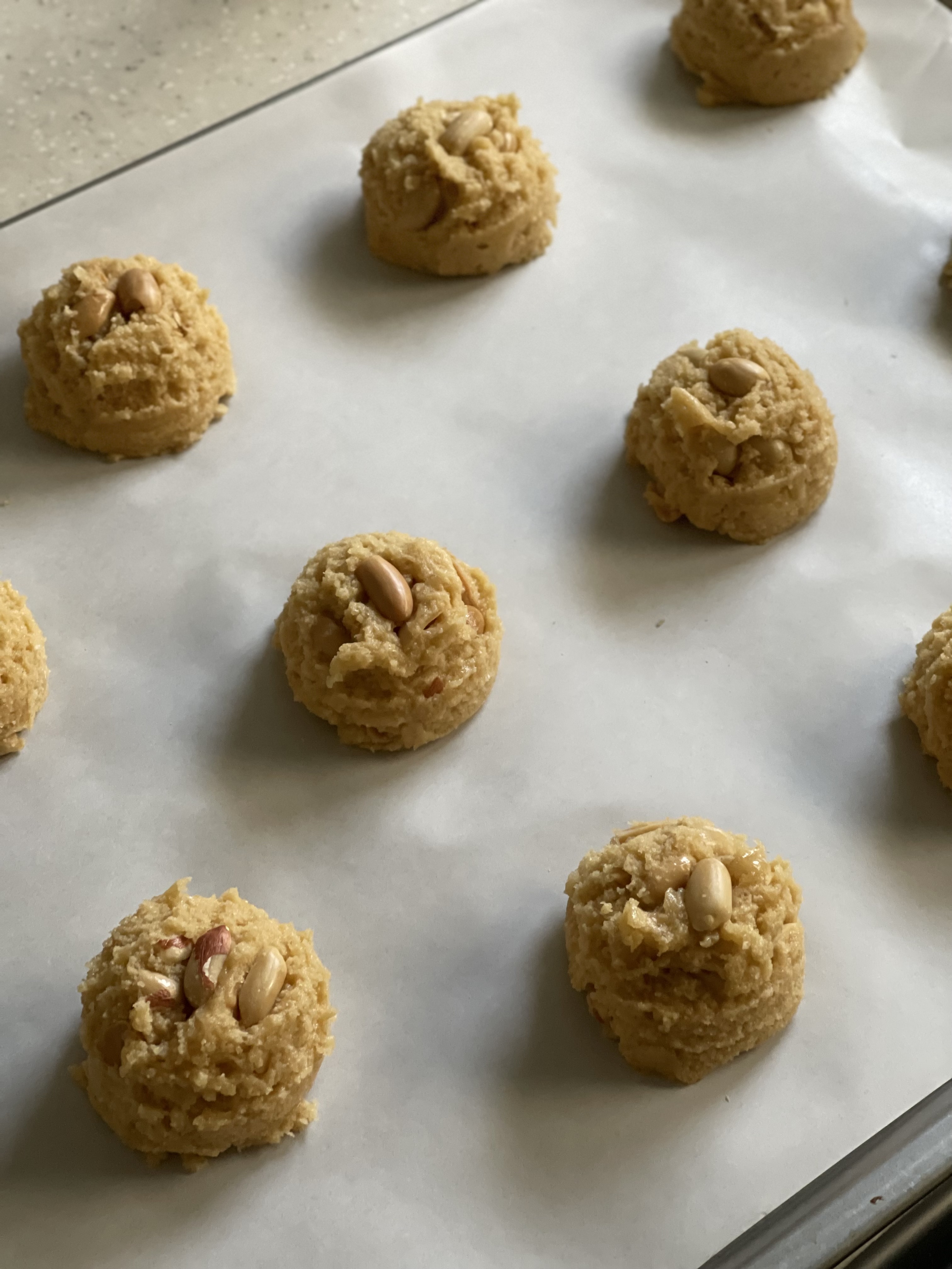 쿠키 생지 위에는 땅콩을 올려 장식한 뒤 오븐에 넣었다.
