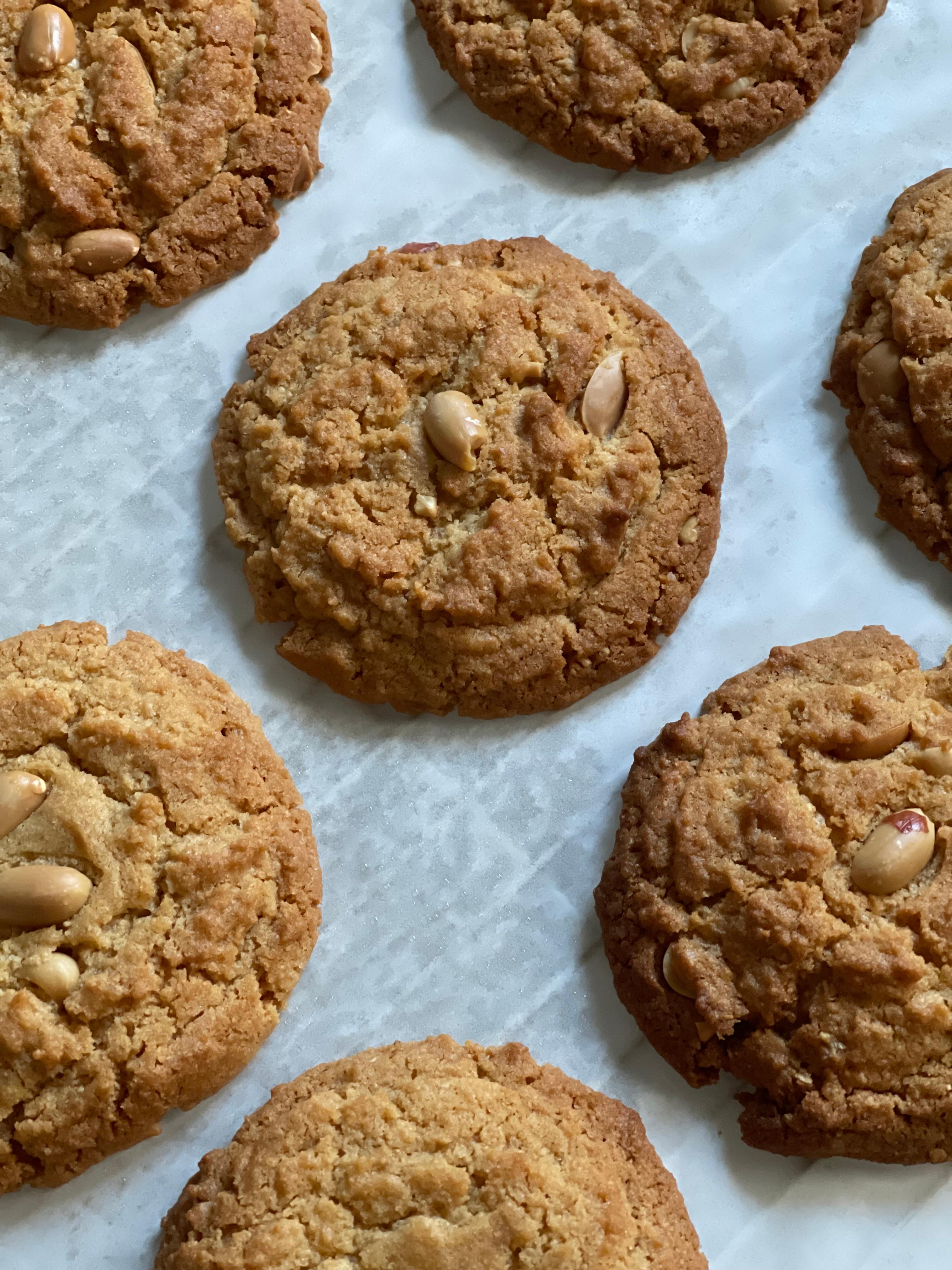 가장자리는 바삭하고 중앙은 쫀득한 식감의 더블 땅콩 쿠키.