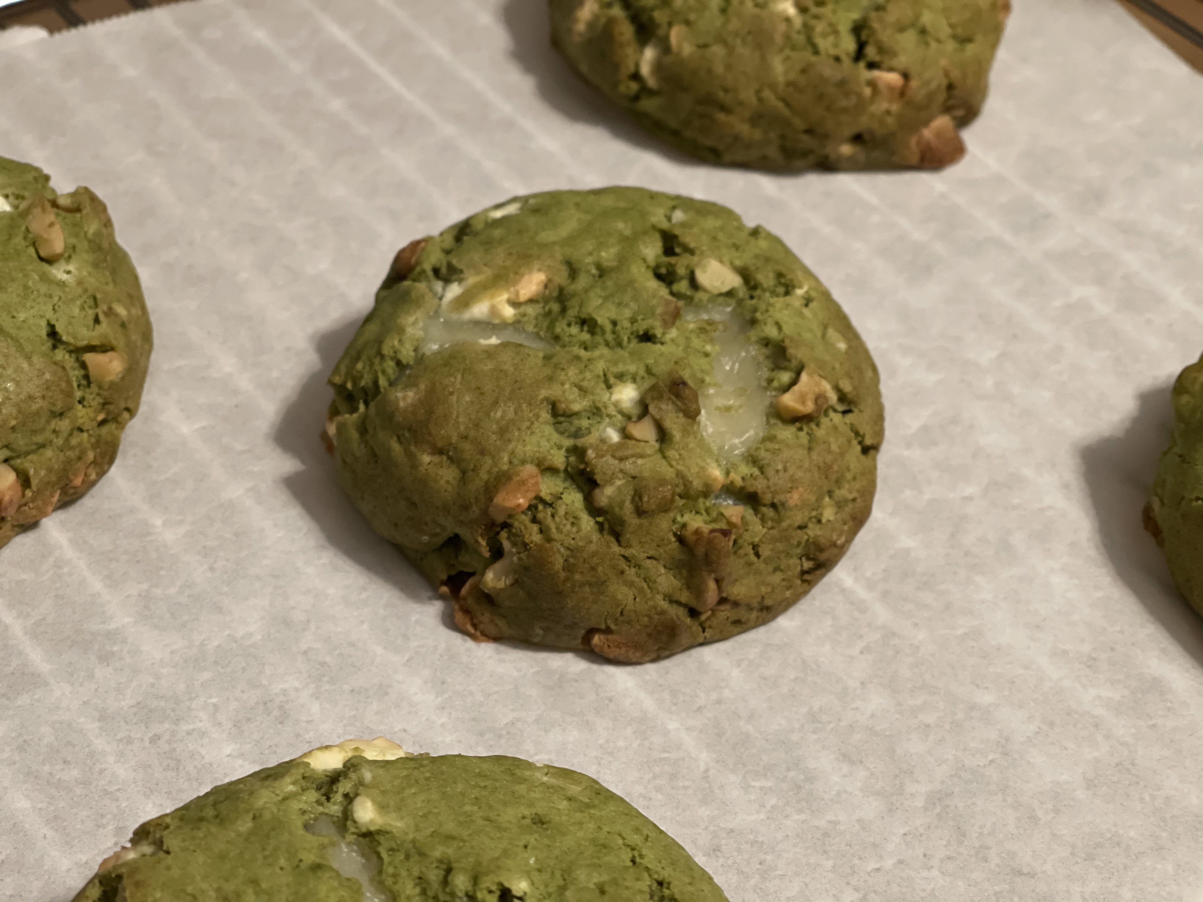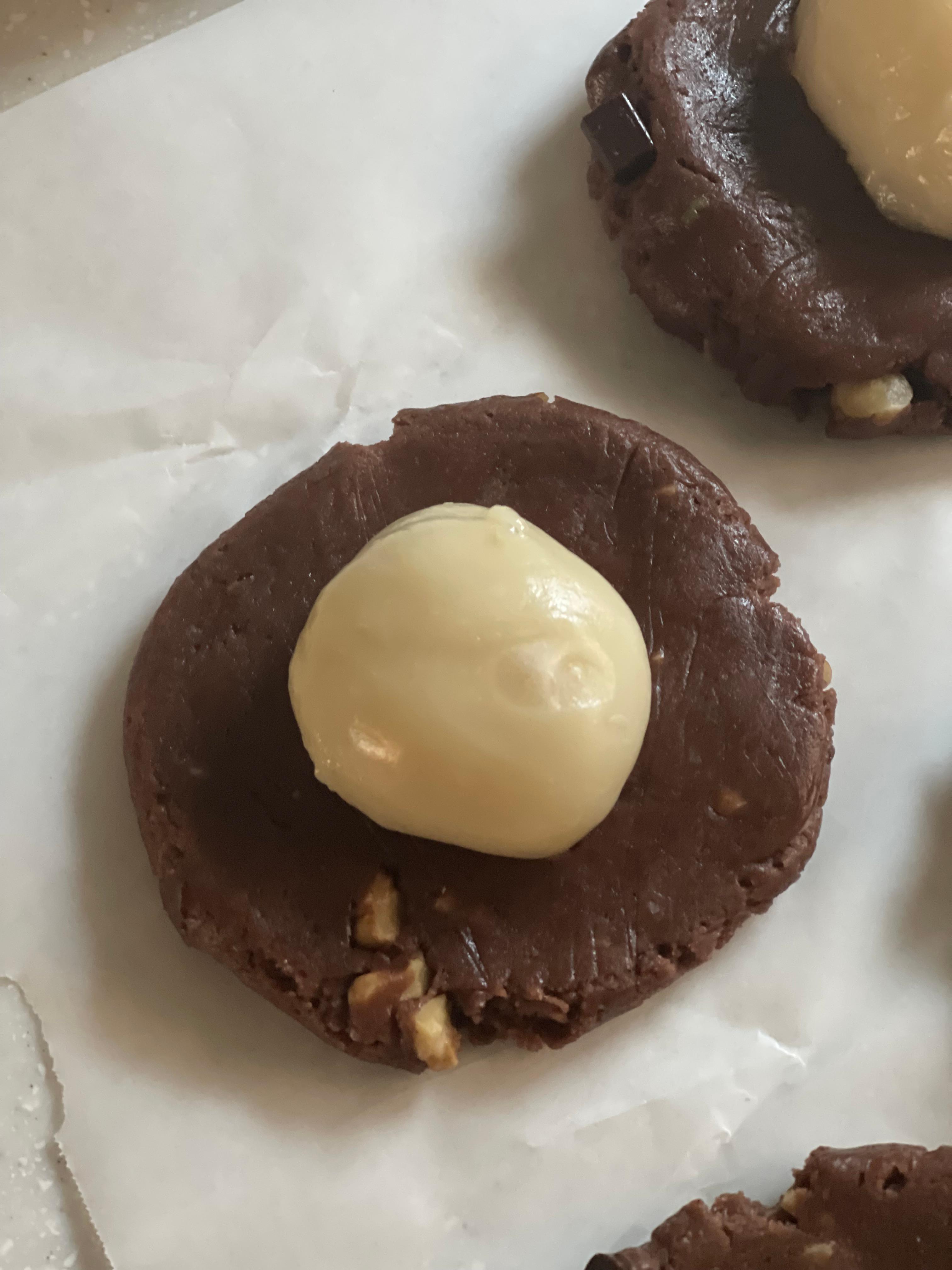 초코 반죽이 말차 반죽보다 조금 더 말랑한 질감이었지만, 완성된 모양은 크게 차이가 없었다. 원 레시피에는 초코칩이 들어가지 않지만, 나는 따로 추가했다. 다크 초코칩이 딱 20g 남아 있어 그만큼만 넣었는데, 다음에는 30g 정도가 더 좋을 것 같다. 말차 쿠키 반죽에는 화이트 커버춰를 30g 넣었다.