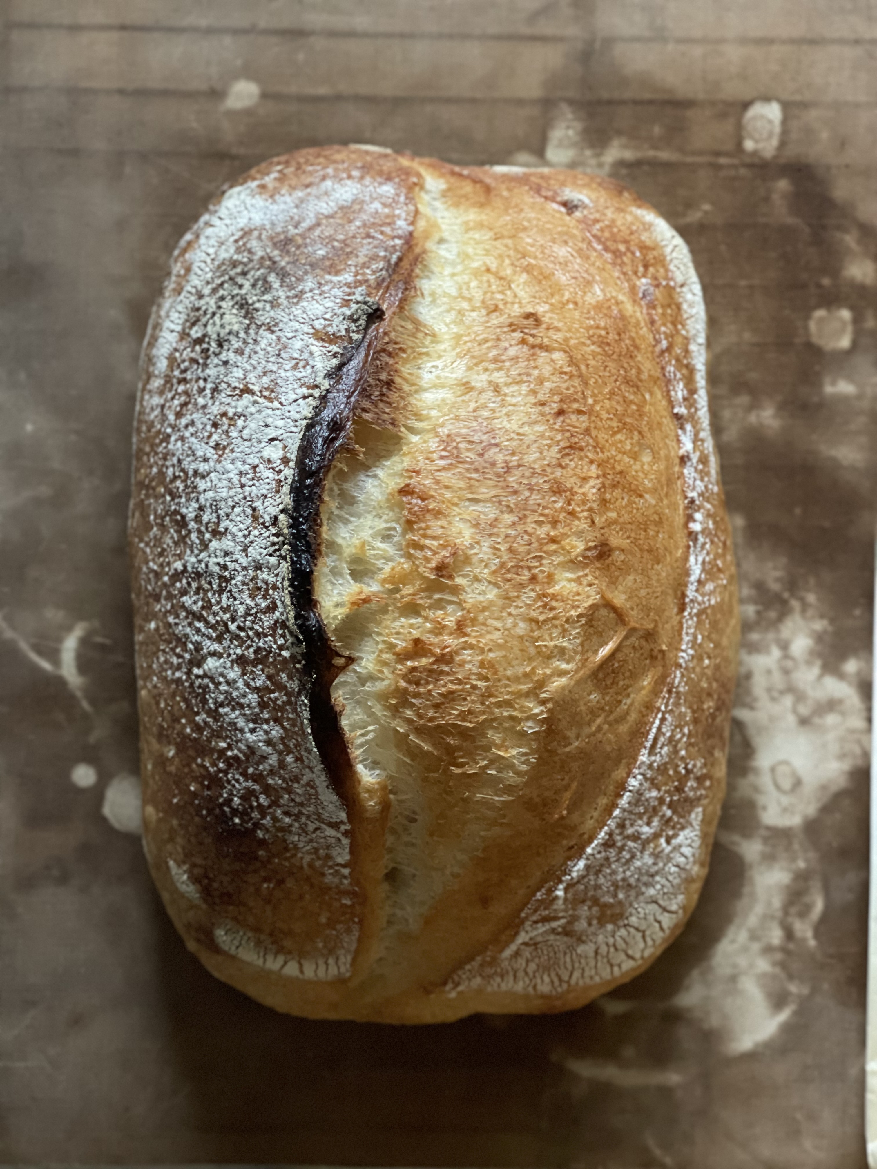 강력분으로만 구운 사워도우보다 더 찰지고 크리미한 식감이다.