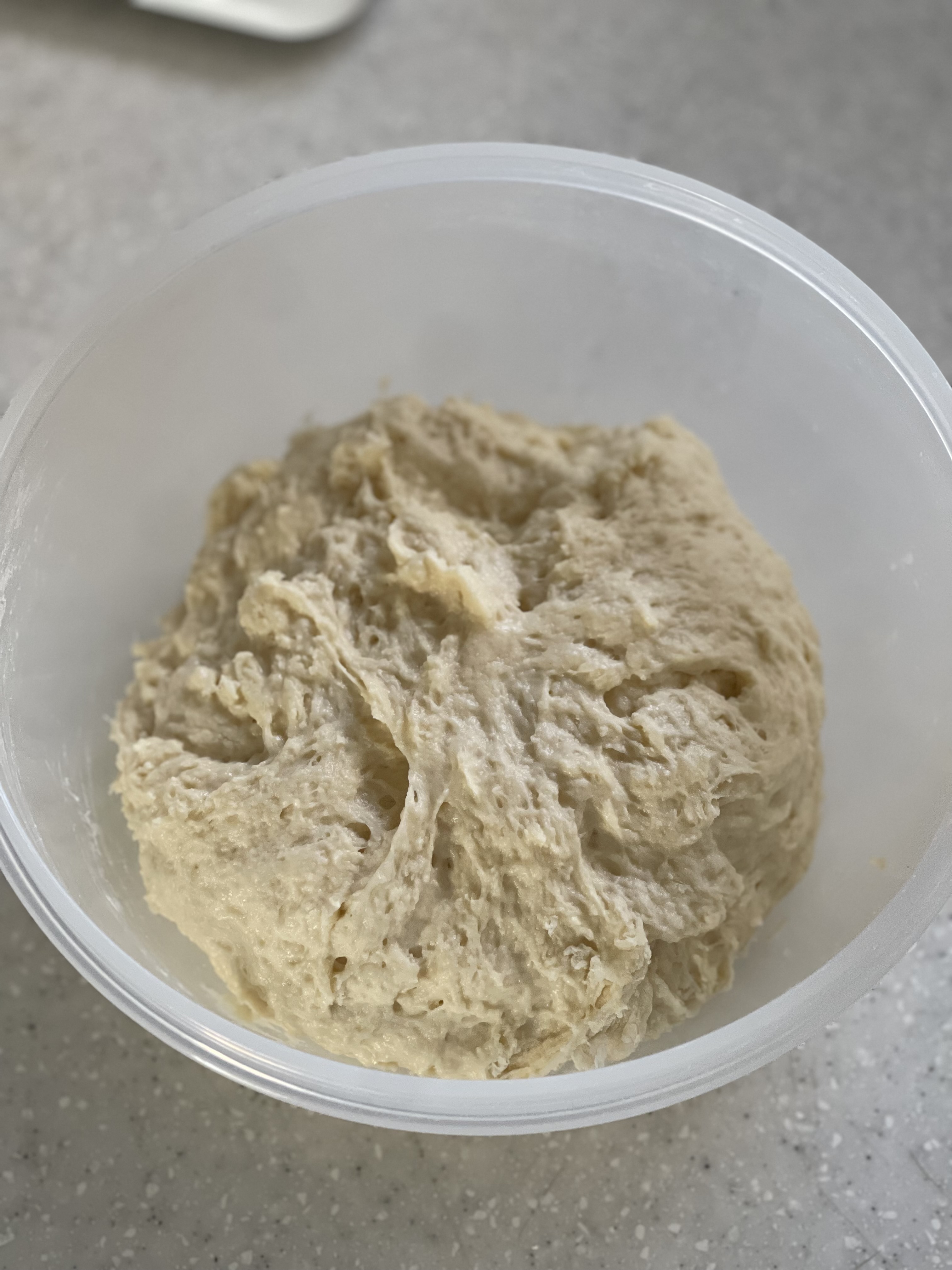 약 14시간의 냉장 휴지 후 반죽을 꺼냈다.