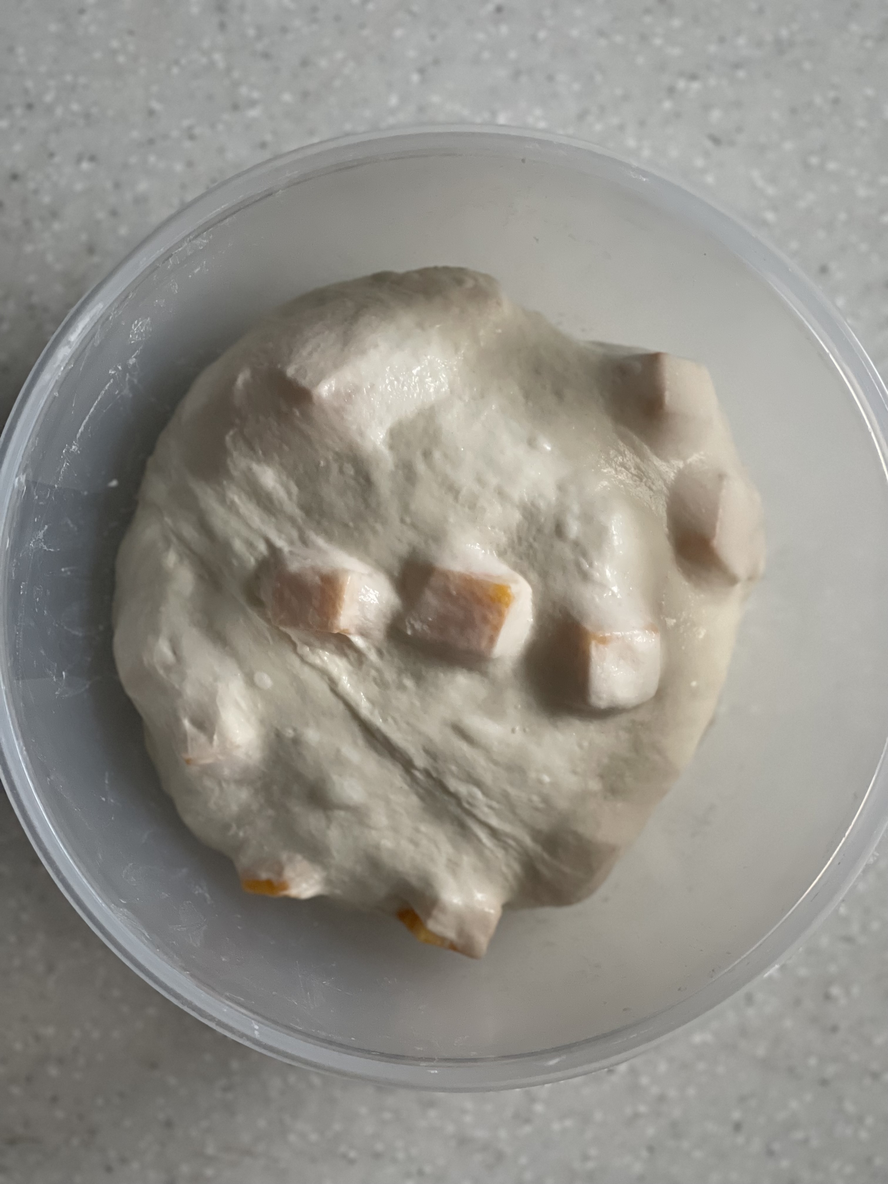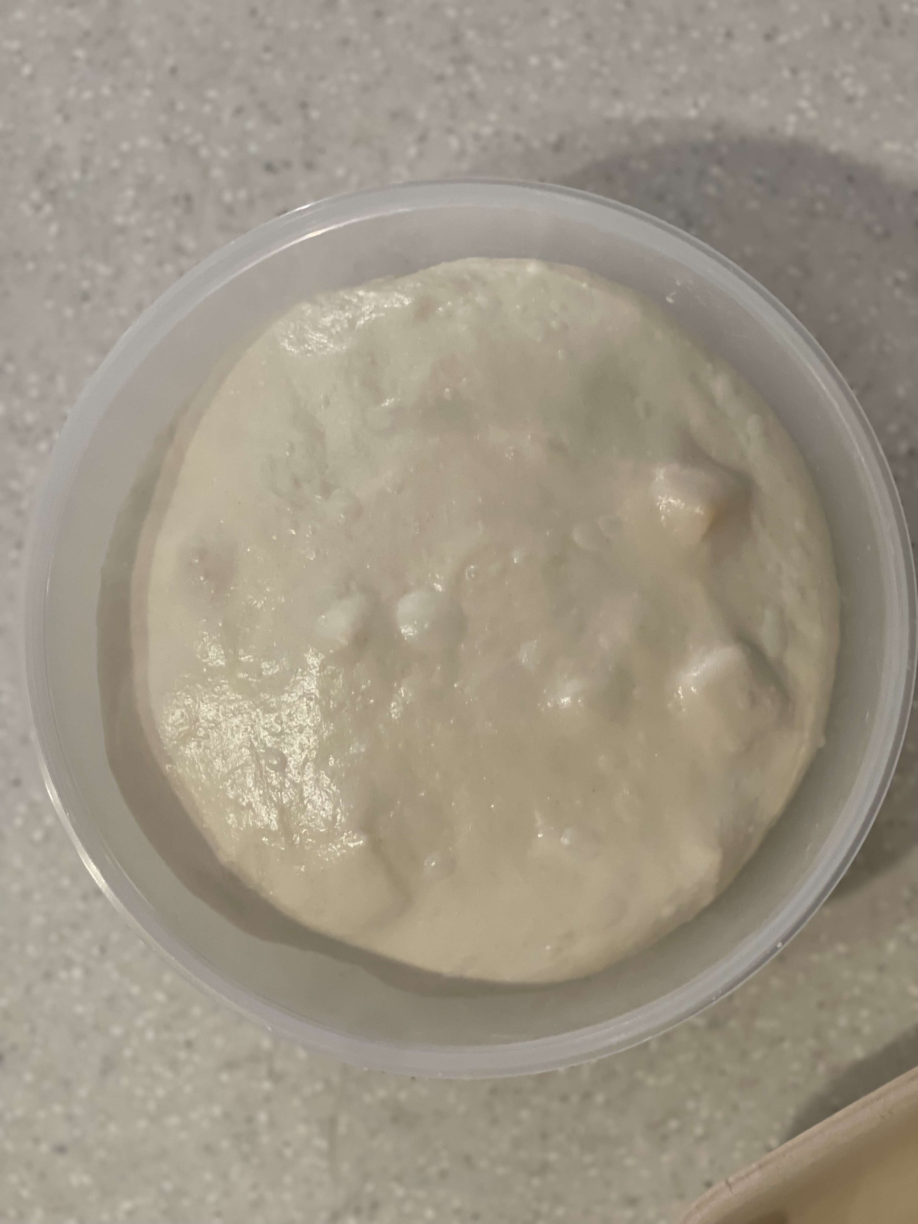 가스가 가득 차 통통하게 부풀어 오른 반죽을 보니 다음날 아침이 기대되었다.