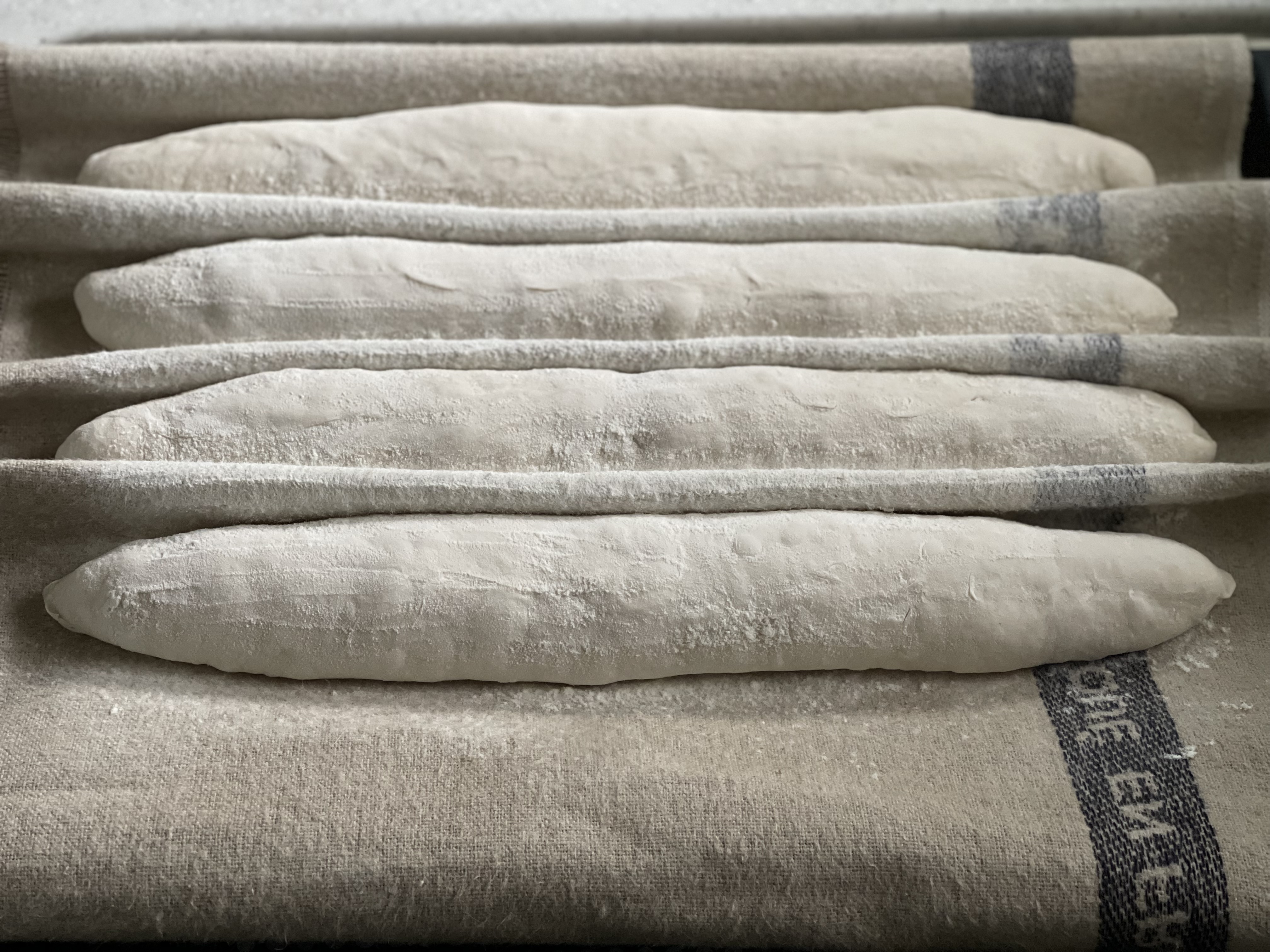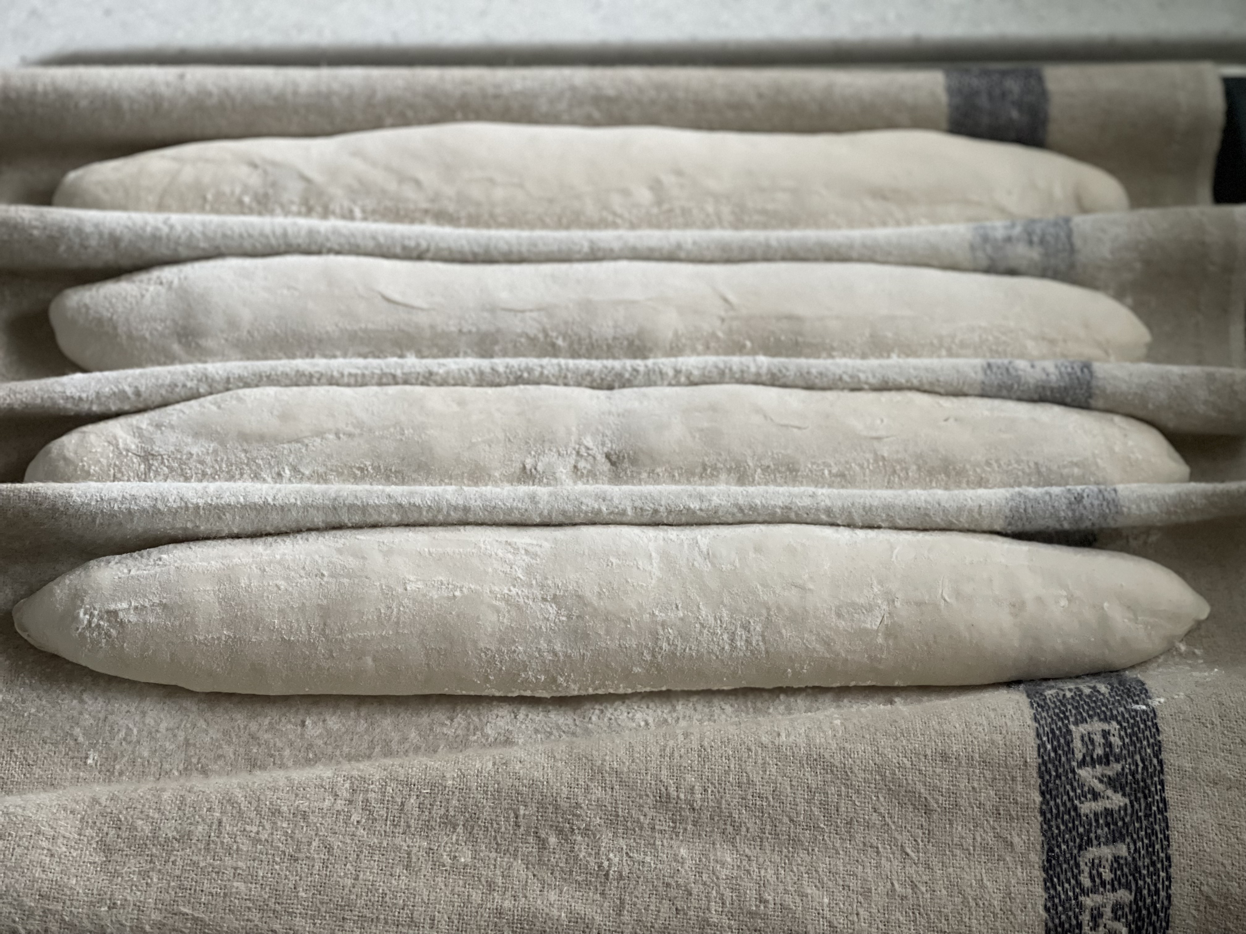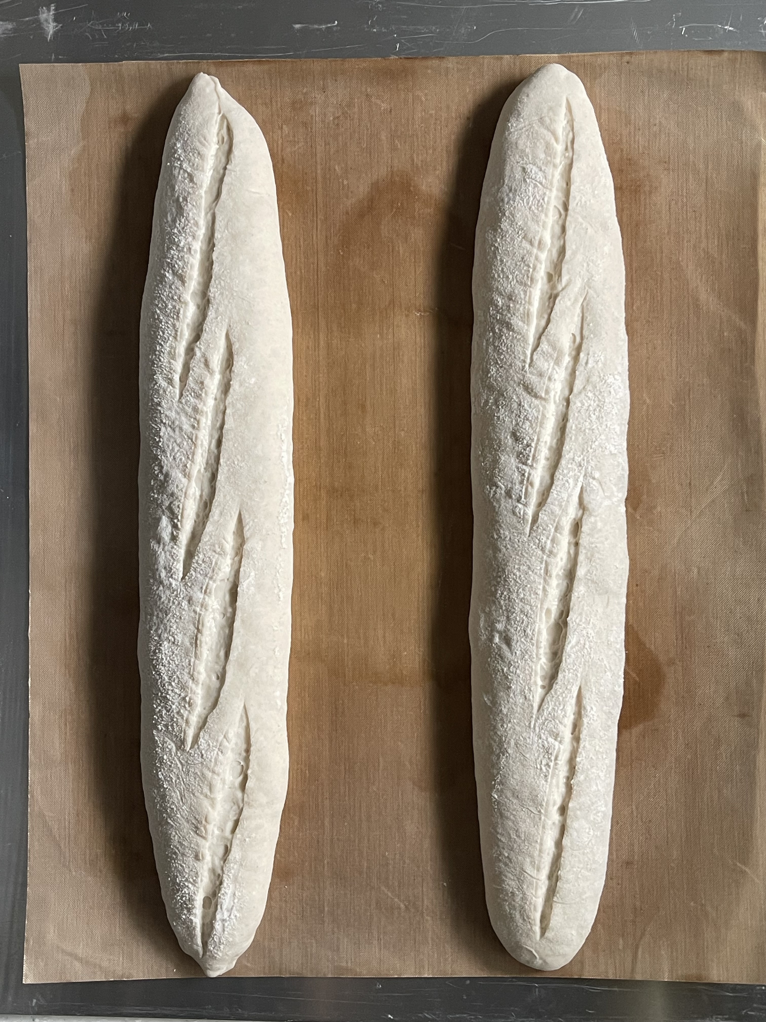 벤치 타임 동안 반죽이 많이 발효된 것 같아서 마지막으로 성형한 바게트를 기준으로 2차 발효는 20분으로 짧게 진행했다.