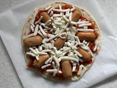 - 또띠아 피자: 또띠아 위에 펴 바르고, 냉장고 털어서 토핑 얹고 치즈 얹어서 후라이팬 또는 오븐에 살짝 굽기