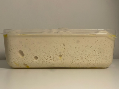 - 18:30 실온 발효 시작 (22℃ 약 4시간) → 2배 이상 키우기 목표