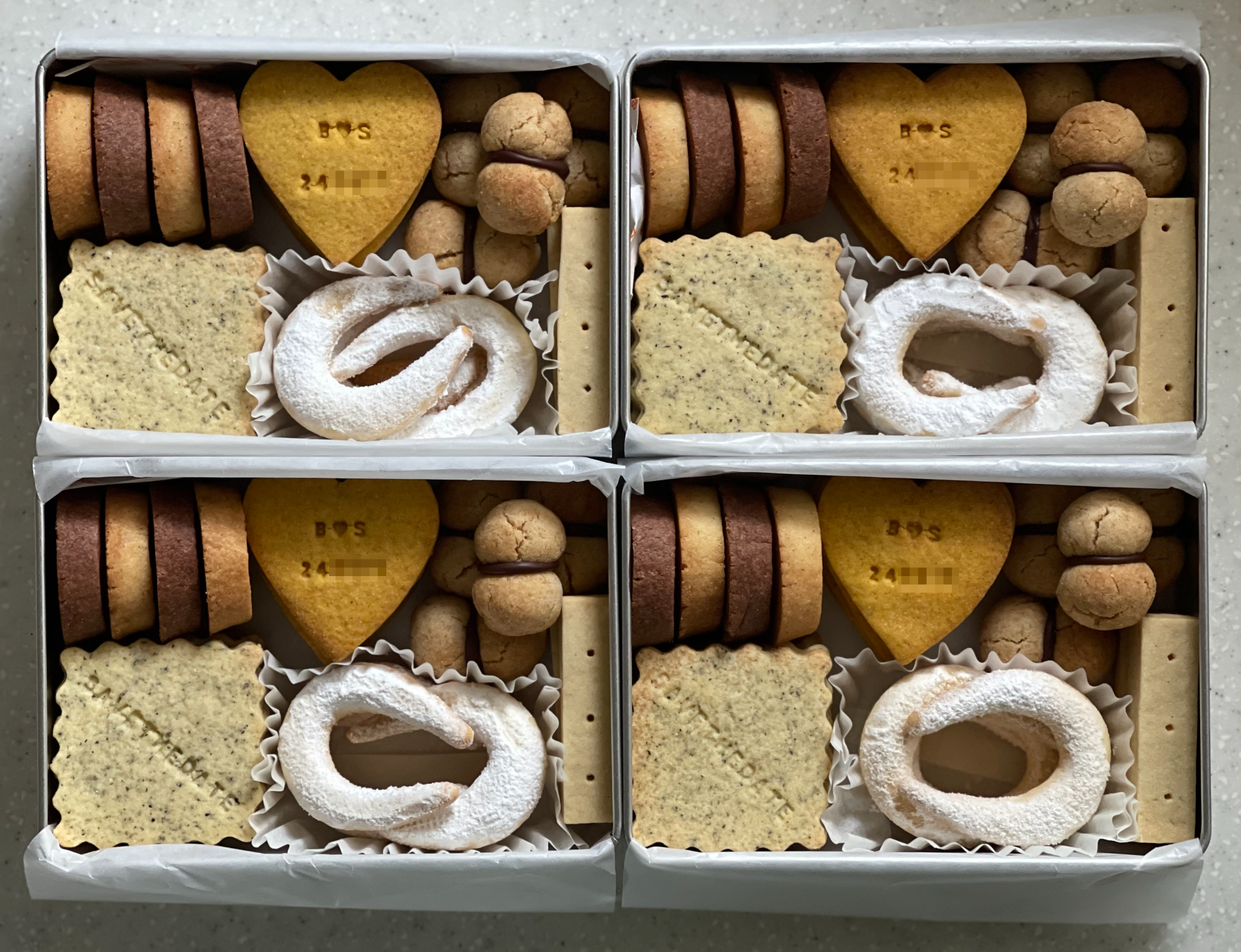 작년 결혼식을 준비하면서, 소중한 친구들에게 청첩장과 함께 쿠키박스를 선물했었다. 여러 영상들을 참고해나가며 하나하나 레시피를 골라 담았고, 쿠키 스탬프로 날짜와 초대 문구도 새겨봤는데... 선명하지 않게 찍혀서 살짝 아쉬웠던 기억.