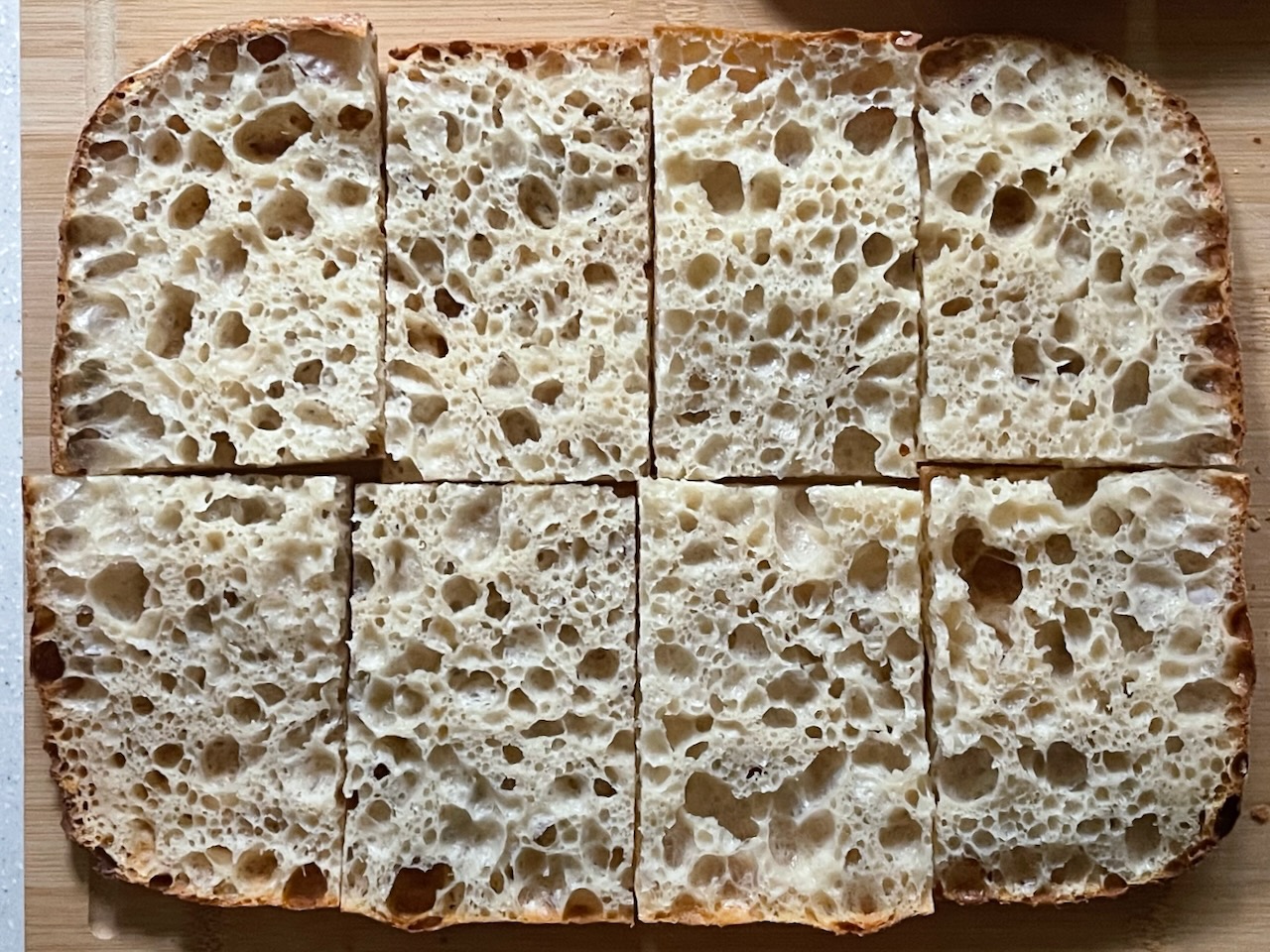 지난 6차 시도엔 굽는 온도 조절에 실패해 두껍고 질긴 크러스트가 아쉬웠는데, 이번에는 확실히 개선되어 만족스러웠다.