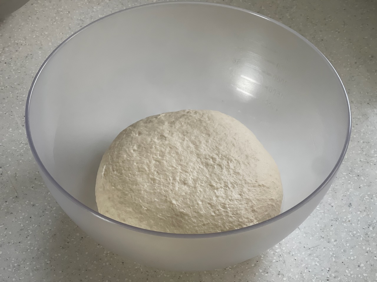 전자레인지에 끓는 물을 담은 스탠리 보온병을 넣고 20분간 추가 발효.(총 50분)