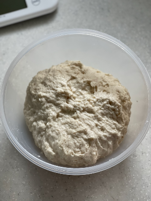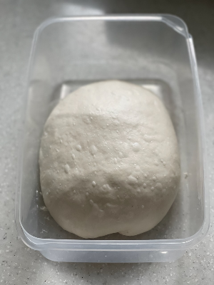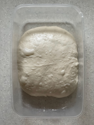 그래서 반느통에 넣고 냉장고에 넣기 전에 실온에서 1시간 30분 발효 후에 냉장고에 넣었다.