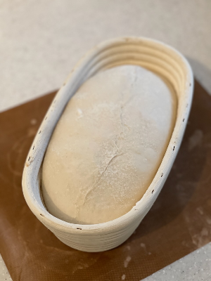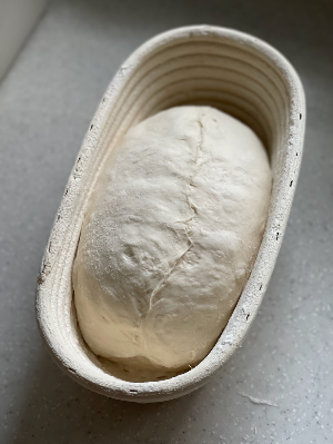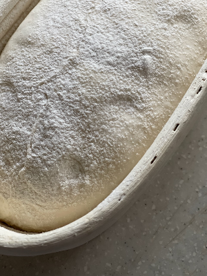 정말 오랜만에 반느통을 꺼내 쓰다보니 천을 씌우는 걸 깜빡했다. 덧가루가 습을 먹고 반죽에 들러붙어서 반느통 무늬대로 붙어서 잘 떨어지지 않았다.