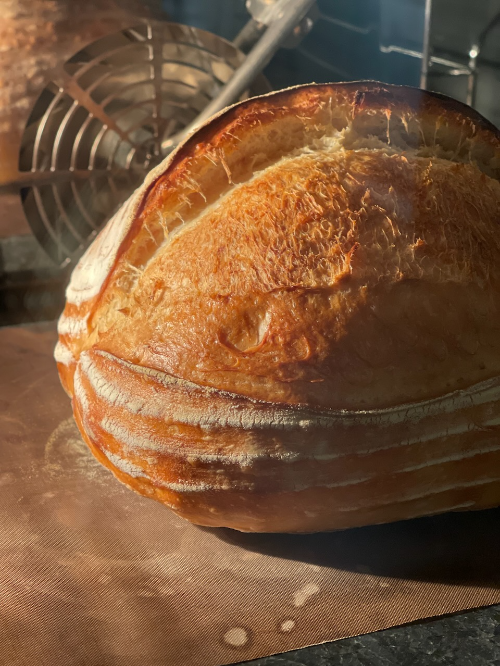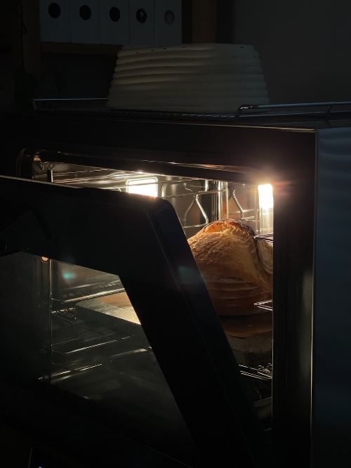 반죽량이 많아서 스팀용 물을 넉넉히 부었더니 오븐 스프링이 크게 잘 나왔다.