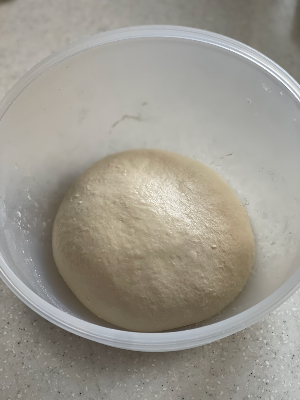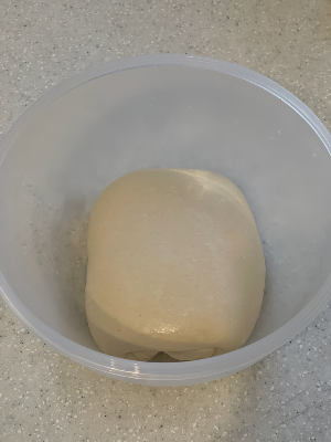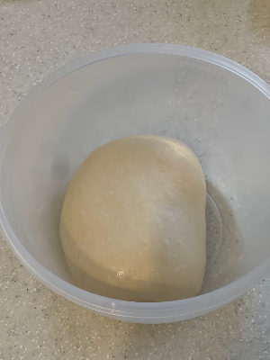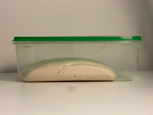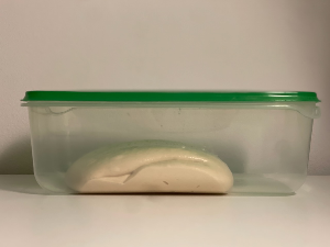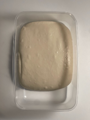 폴딩과 오토리즈를 거듭할수록 반죽에 점탄성이 커지면서 통에서 잘 떨어지고 기포가 올라오는게 보인다.
