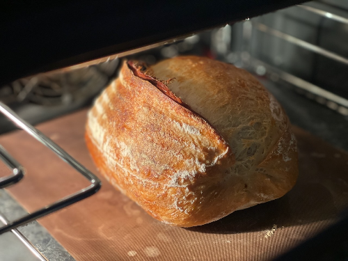 - 2코스 : 250℃ 상하단 열선모드 13분(반죽을 넣고 끓인 물을 자갈에 적당히 붓고 문을 닫는다.) → 오븐 스프링 후 문 열어 습 빼주기