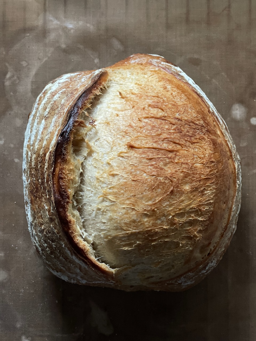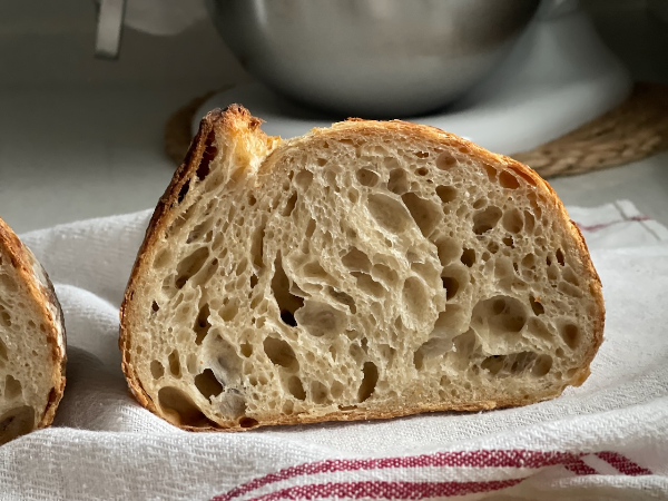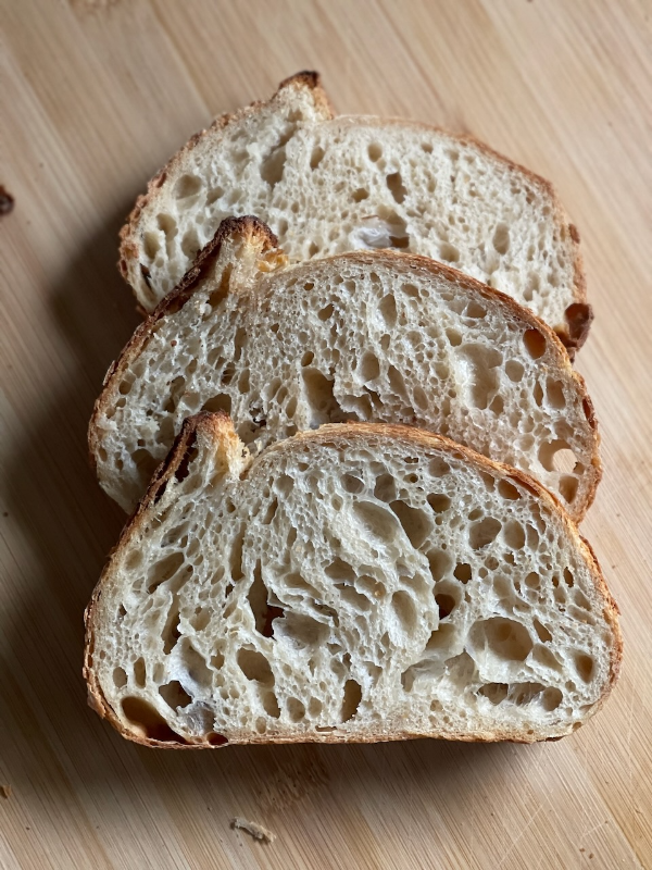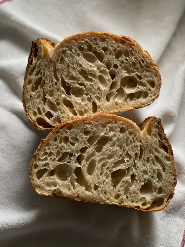 크러스트는 얇고 속은 촉촉 쫄깃한 깜빠뉴. 포리쉐 T65 밀가루와 몰트시럽이 들어가서 풍미가 좋았고 산미도 적당했다.