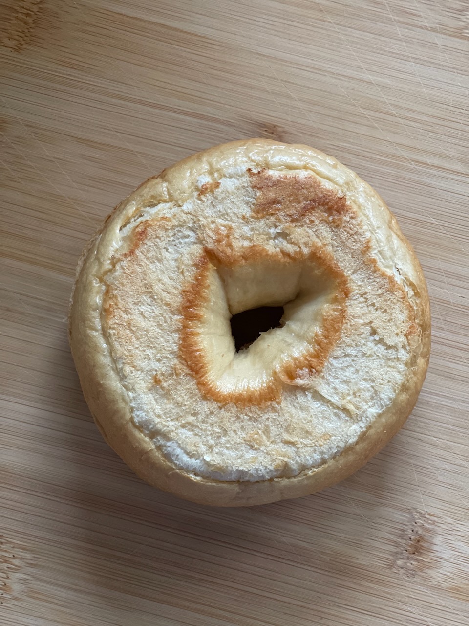 역시나 베이글 바닥이 팬에 달라붙어서 억지로 뜯어냈고,