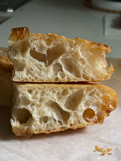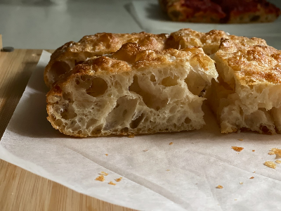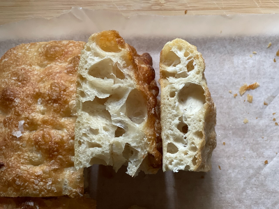이번에 제대로 구운 포카치아는 정말 가볍고 고소했다. 고온에서 짧게 구워 겉은 바삭하고 속은 촉촉하고 부드러운 식감.
