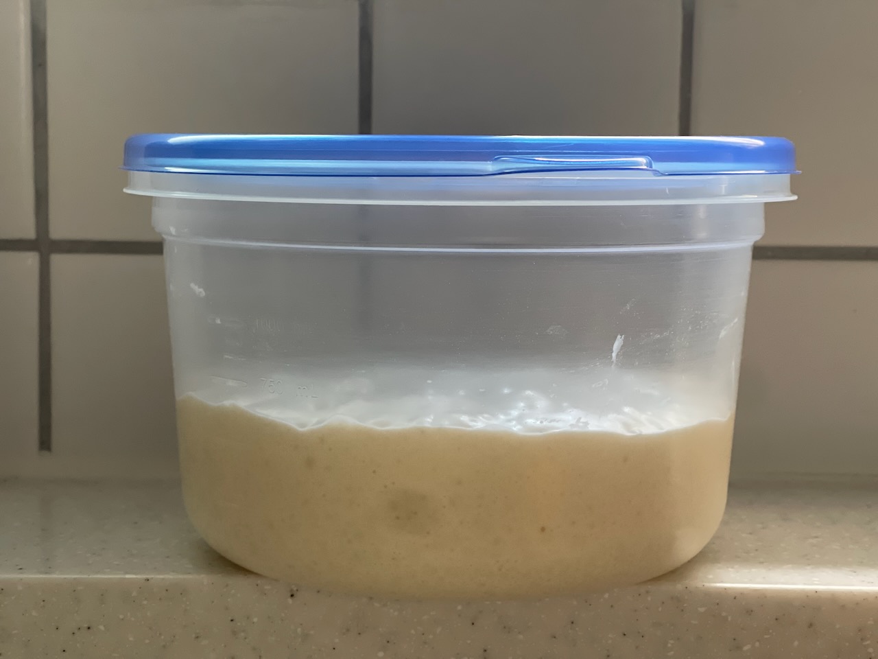 책에서는 풀리시 반죽에 소량의 소금이 들어간다. 그리고 발효 피크까지 90~120분 걸린다고 적혀 있었다. 하지만 우리 집 실내 온도 25도 기준으로는 피크까지 5시간 40분이 걸렸다.